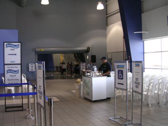 Het handigst is als je al vooraf thuis hebt ingecheckt, zodat je de Setsail Pass al in bezit hebt als je je meldt om aan boord te gaan.