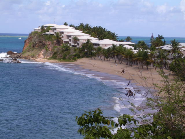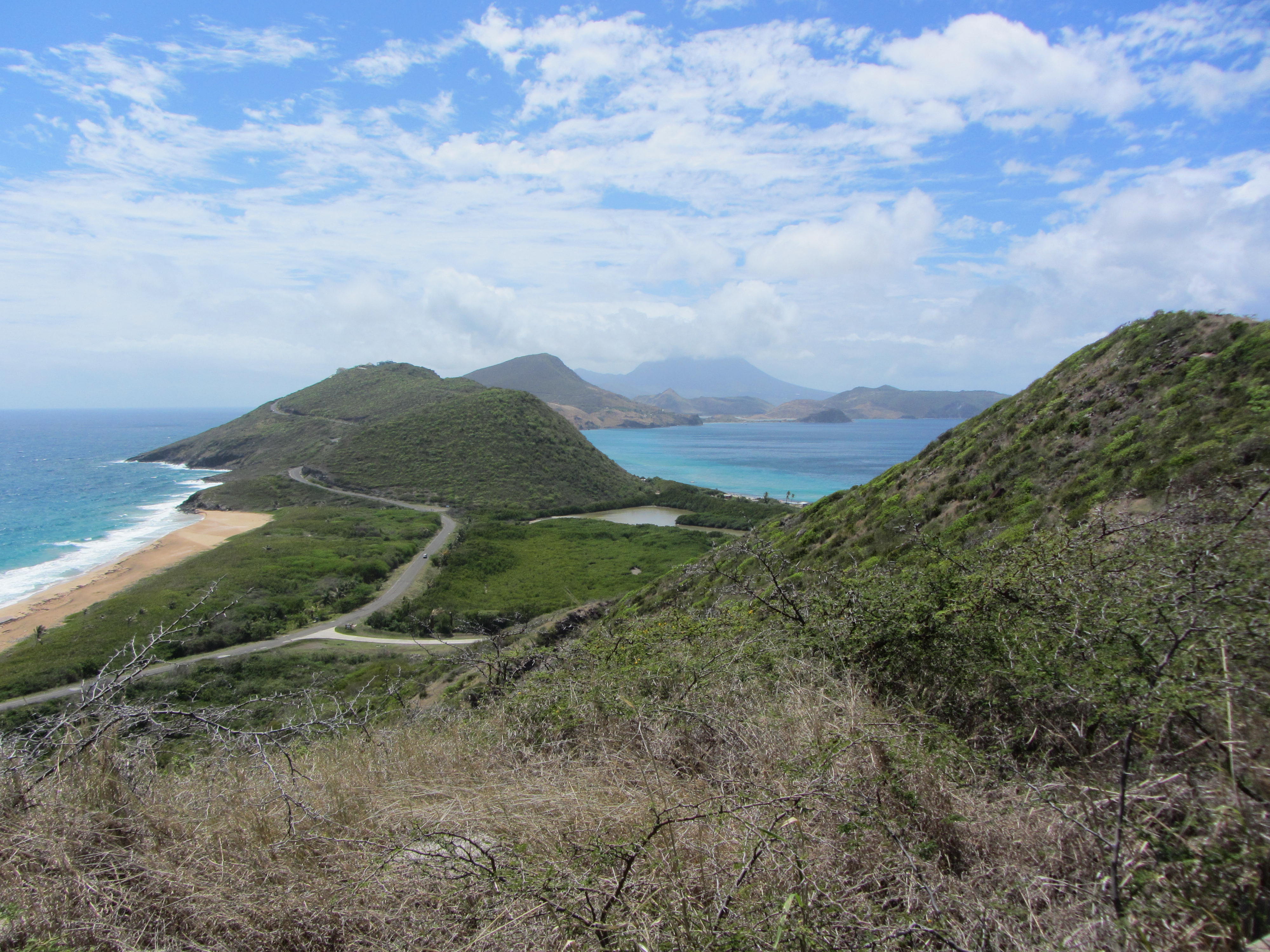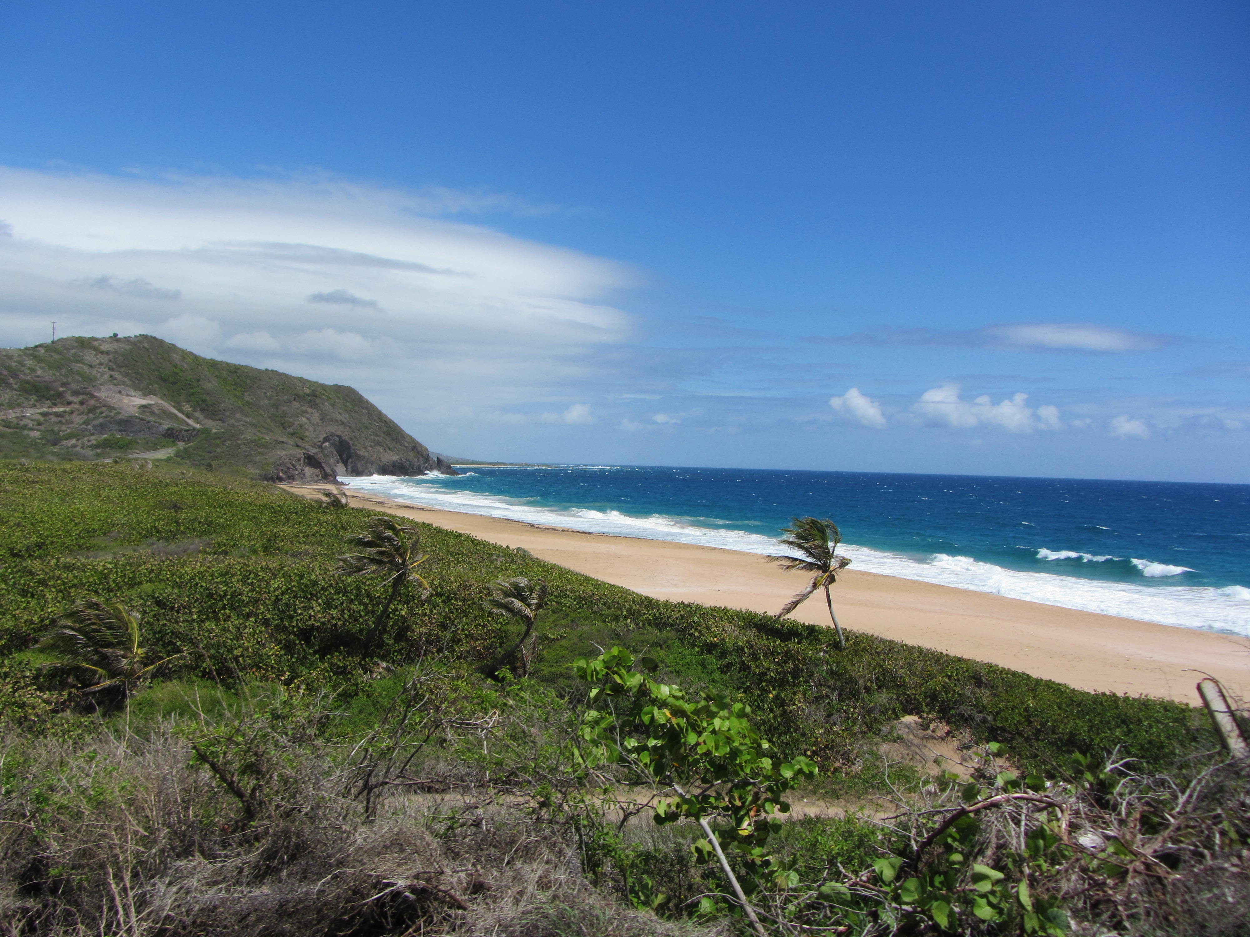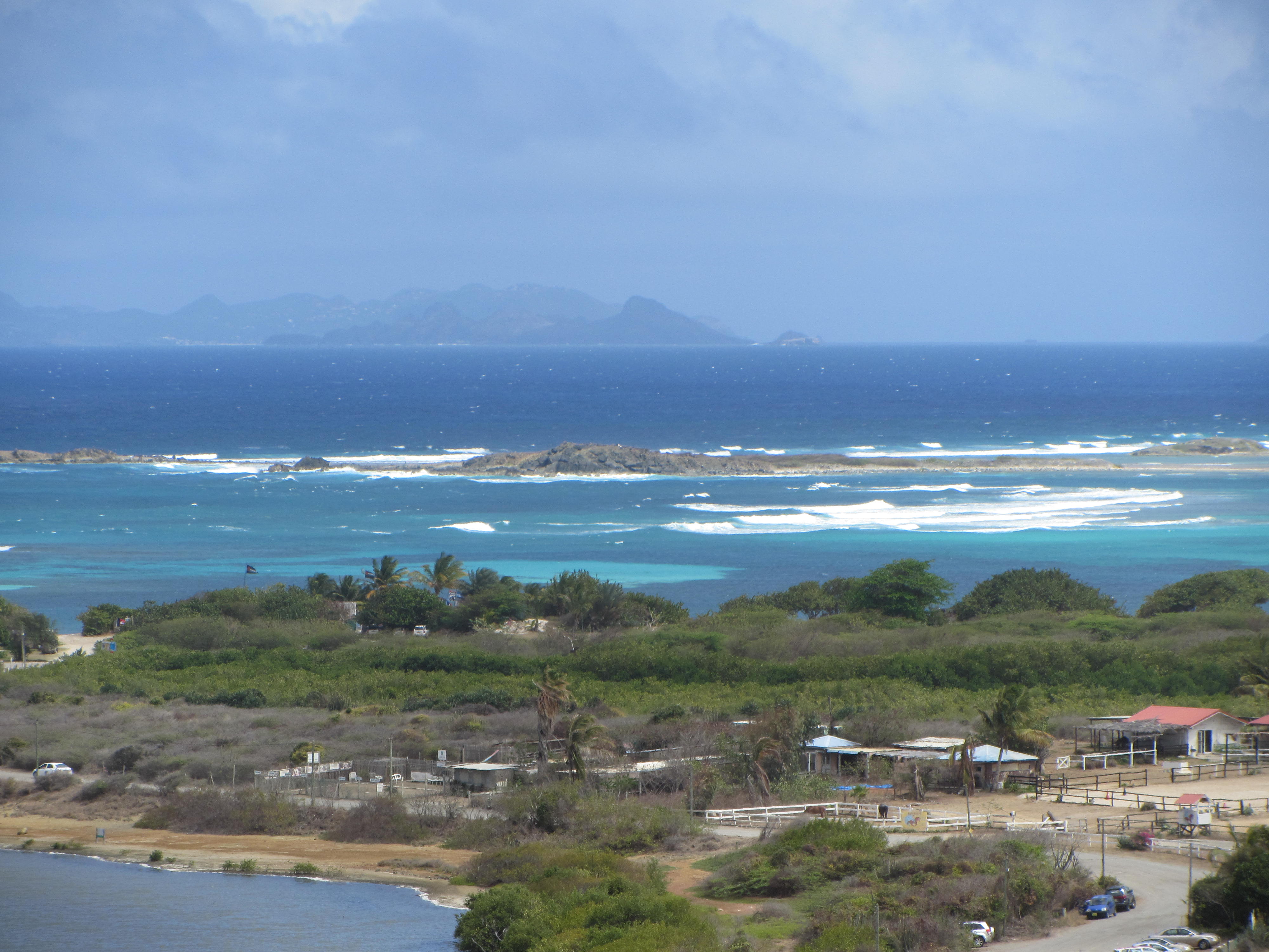Uniek uitzicht: links zie je de Atlantische Oceaan (te herkennen aan de branding), rechts de kalme Caribische Zee!