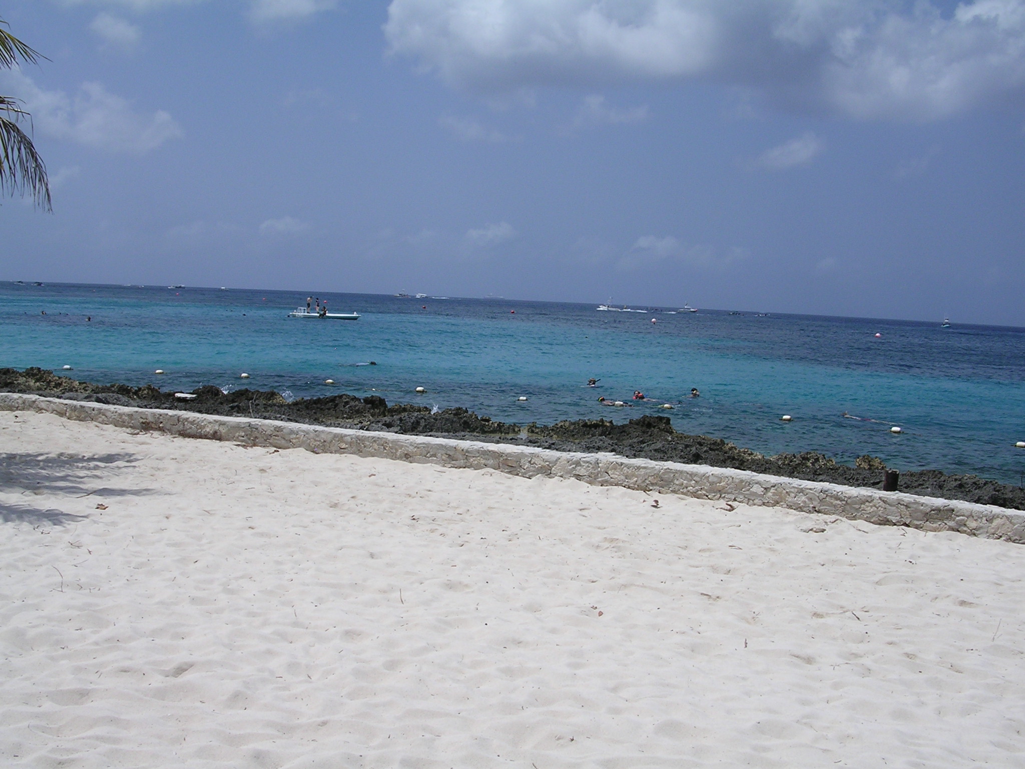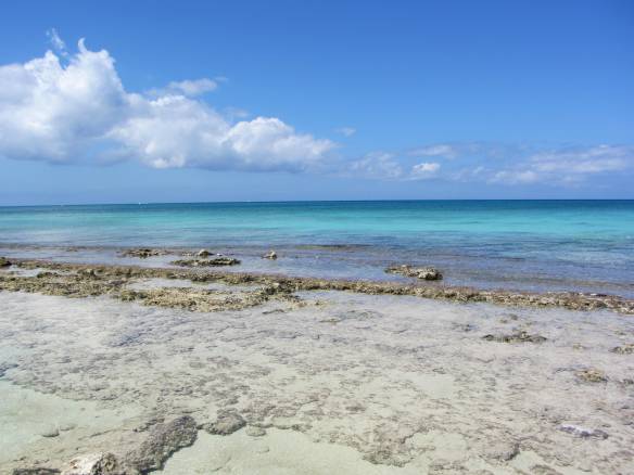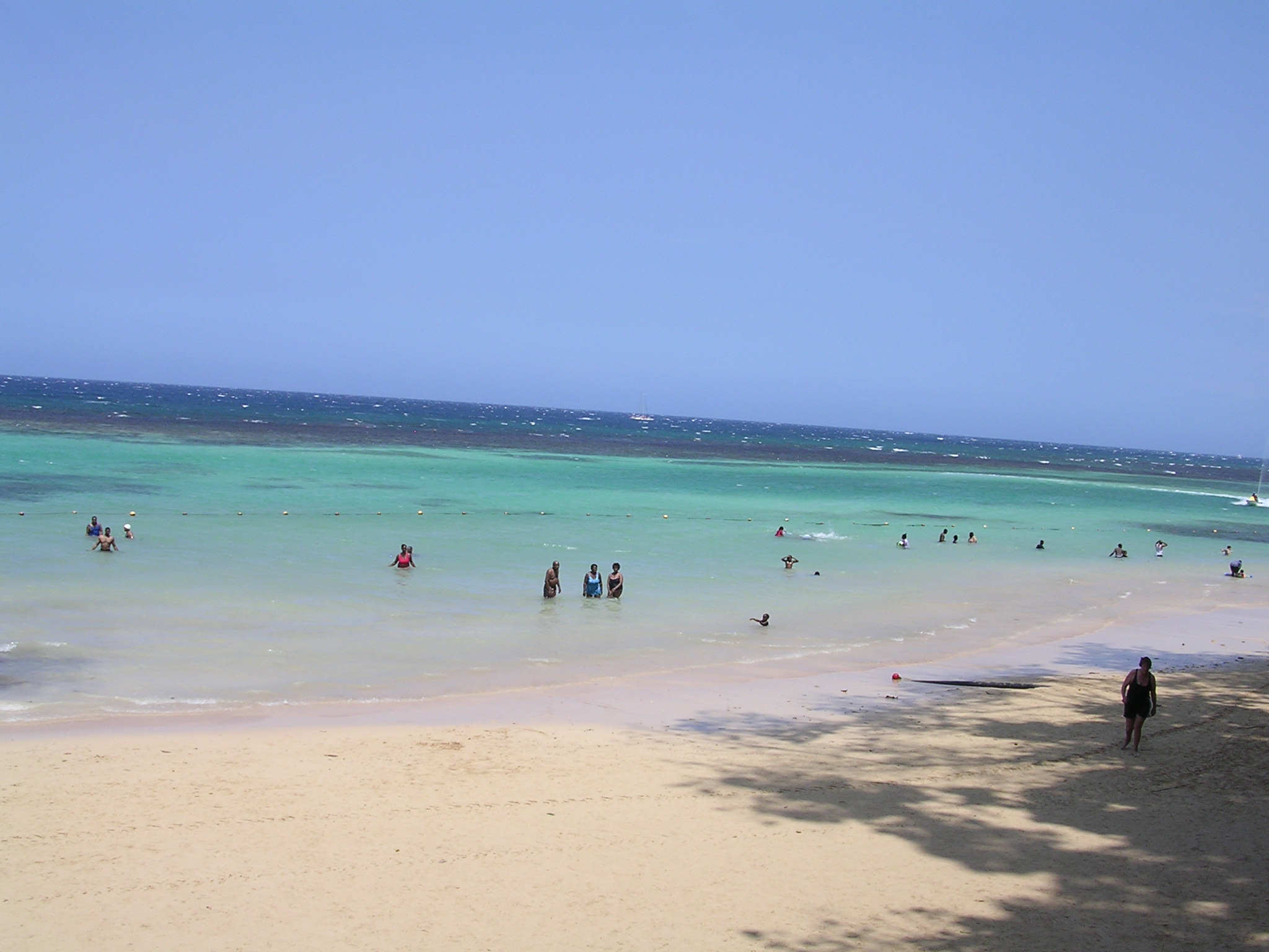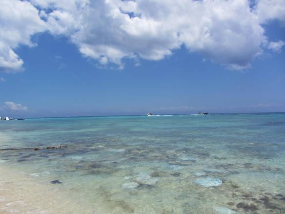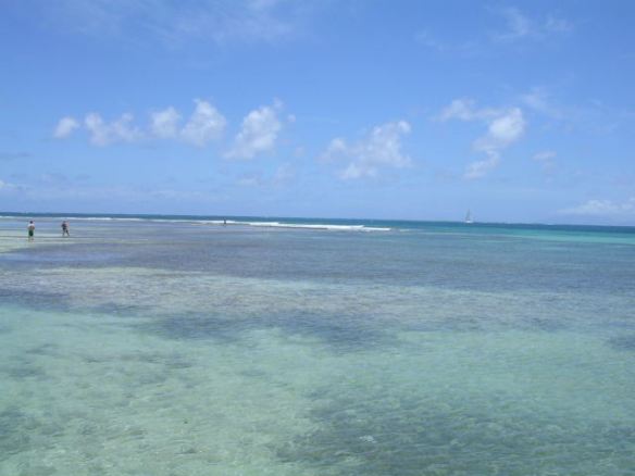 Je kunt hier heel ver de zee in lopen, het blijft heel lang ondiep. Het water was warm en zo helder als kraanwater.