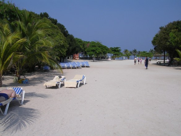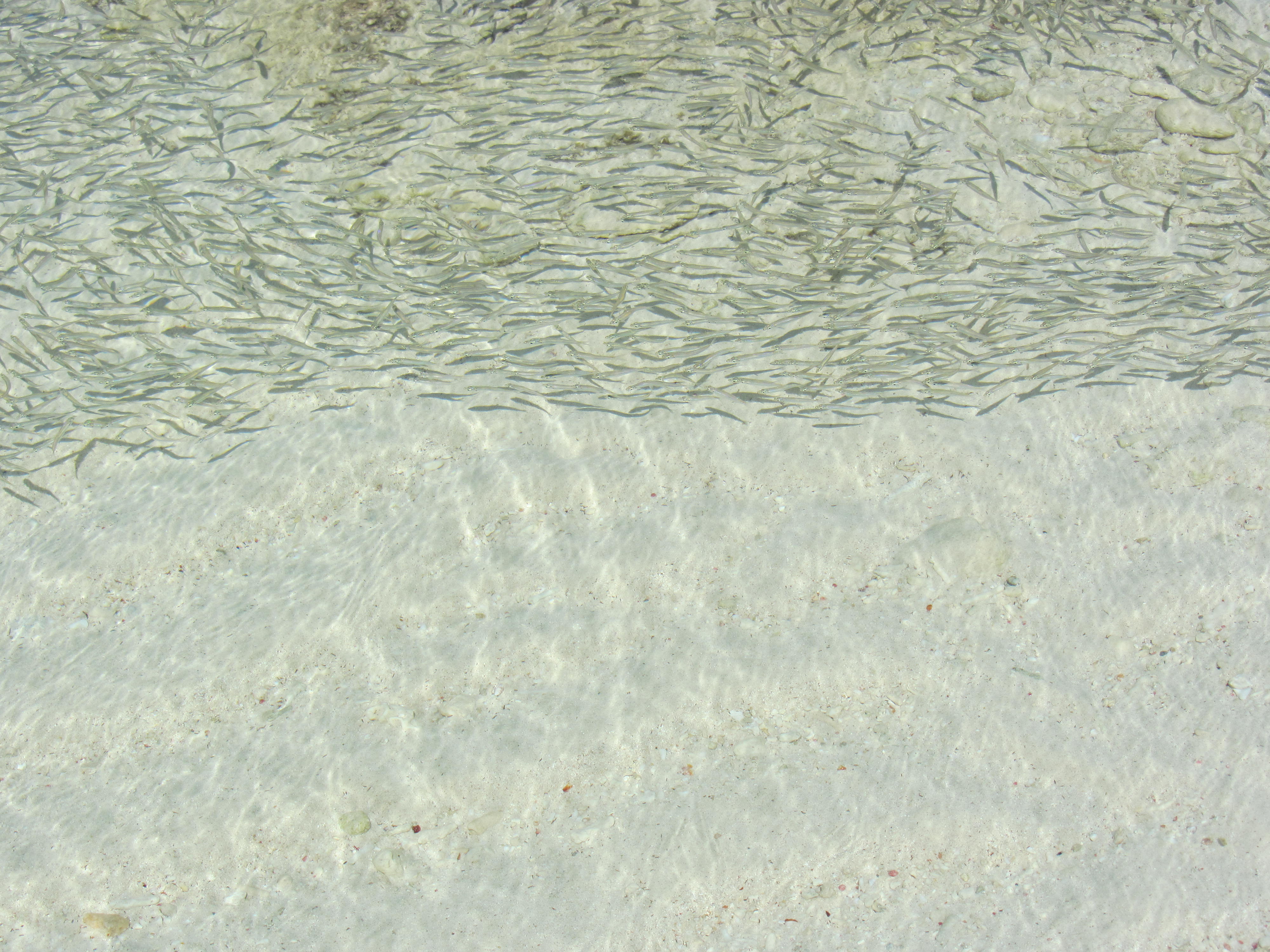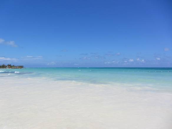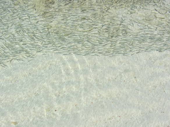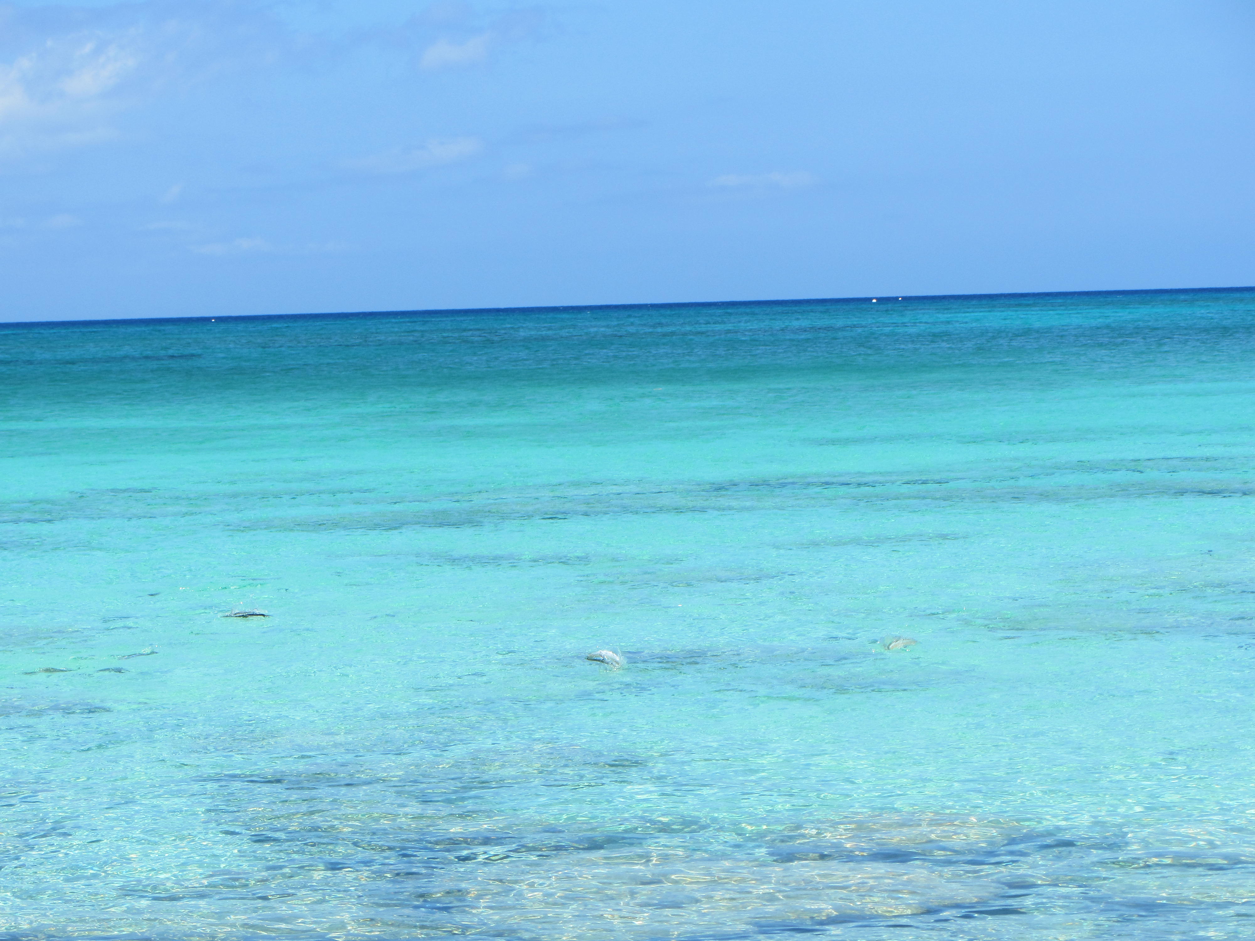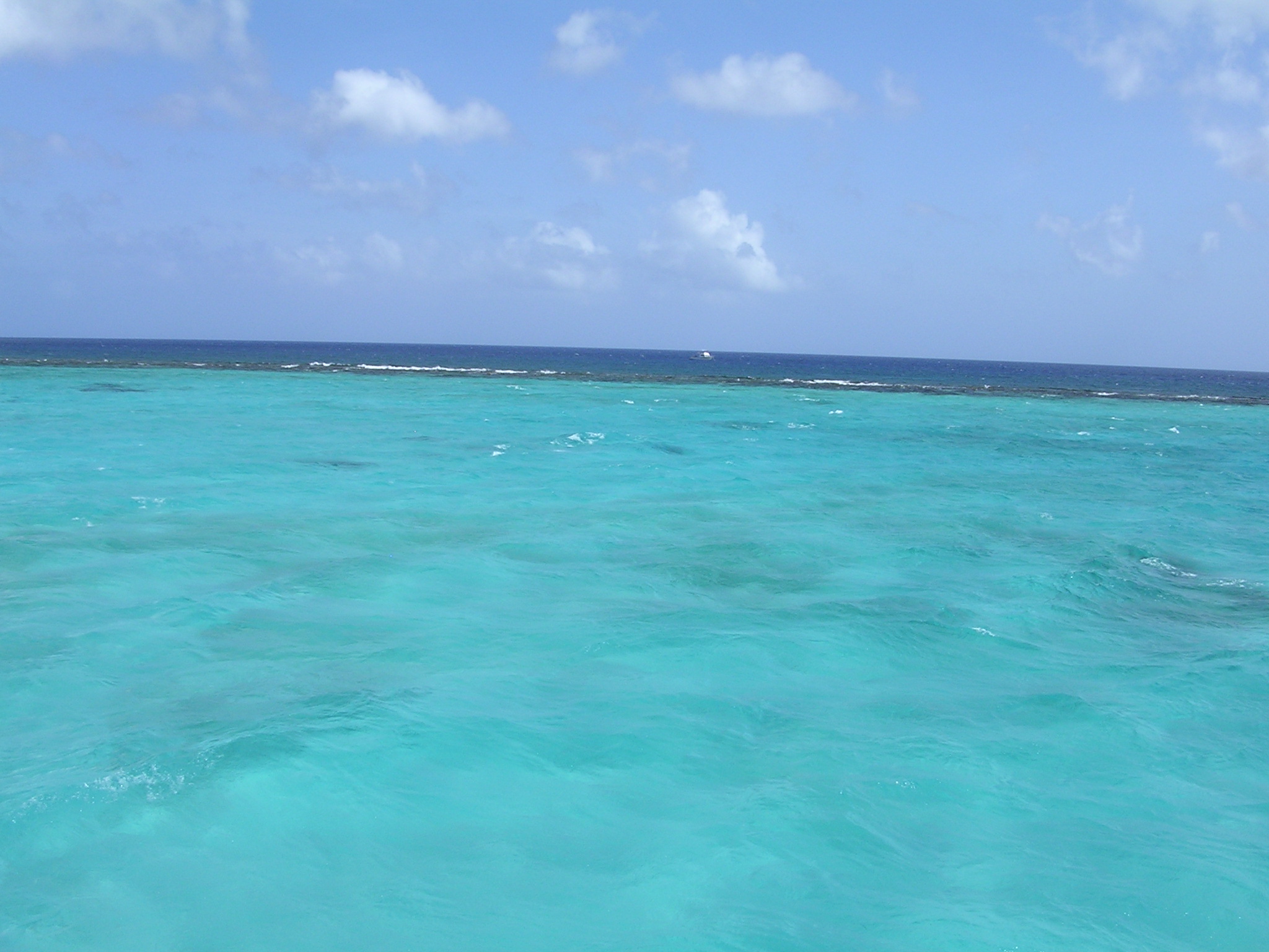 Je kunt hier heel ver de zee in lopen, het blijft heel lang ondiep. Het water was warm en zo helder als kraanwater.