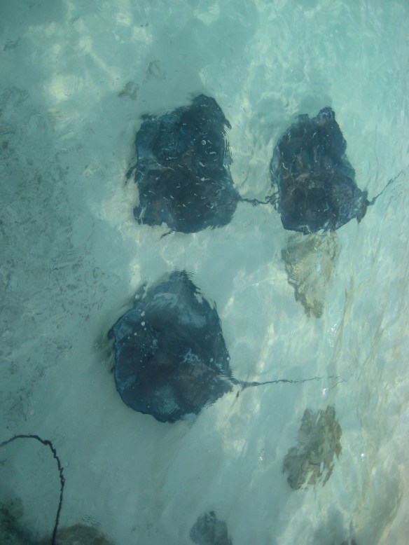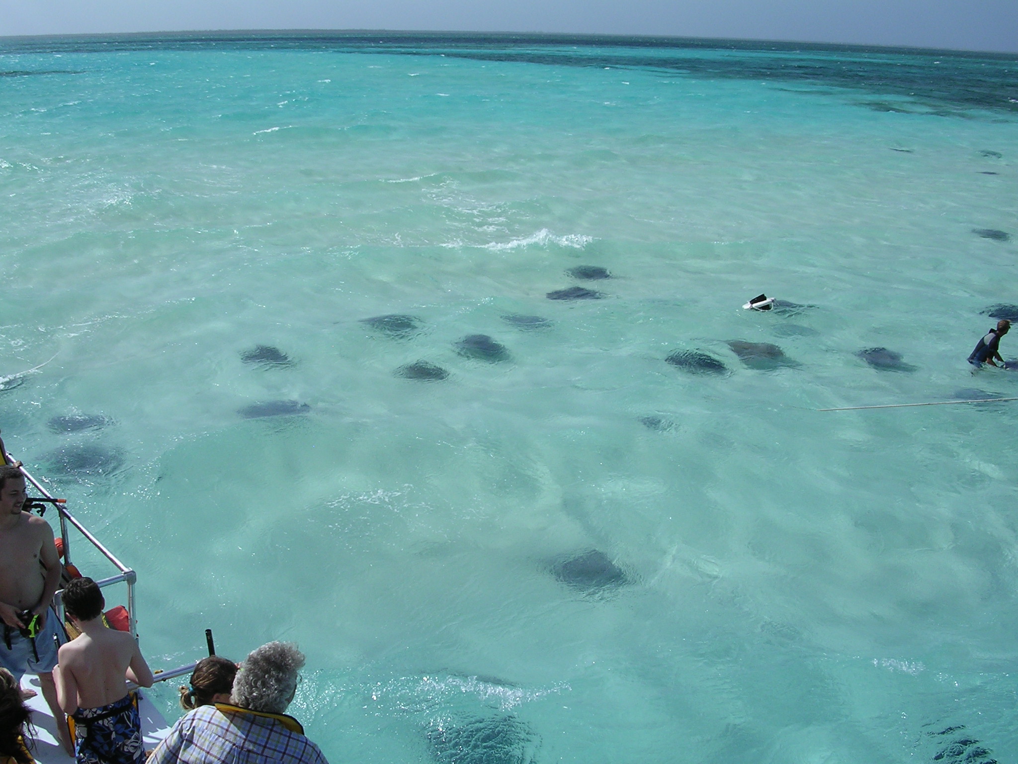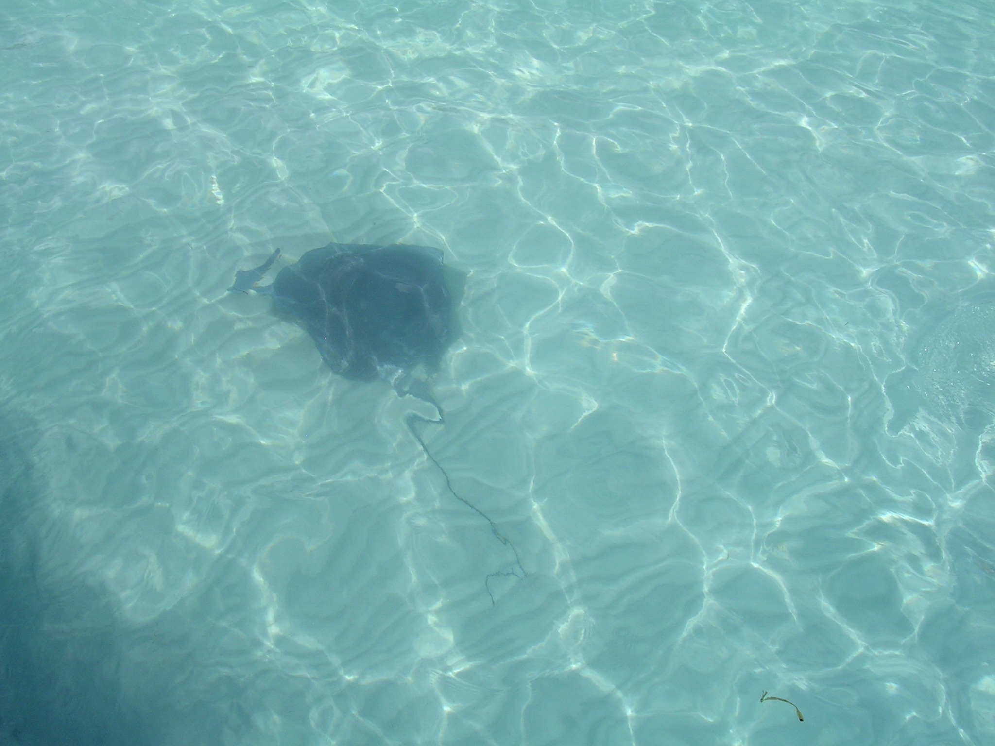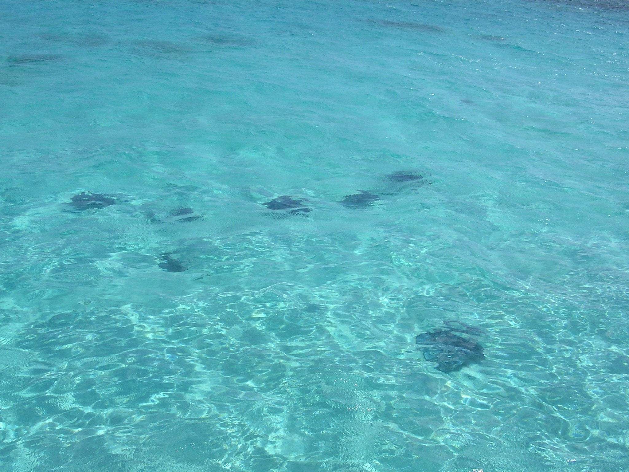 Het lijkt wel of deze roggen in een zwembad liggen, zo helder is het water hier