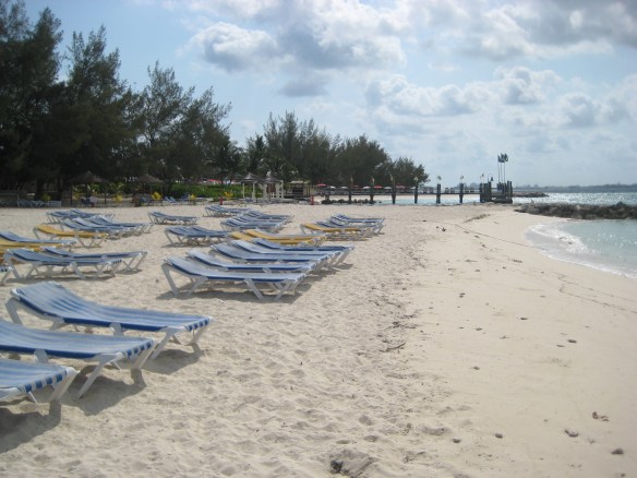 Tweede bestemming op de Bahama’s is Coco Cay, een privé-eiland van Royal Caribbean. Hier arriveren we met een tender, een kleine boot die ons van en naar het schip aan wal brengt