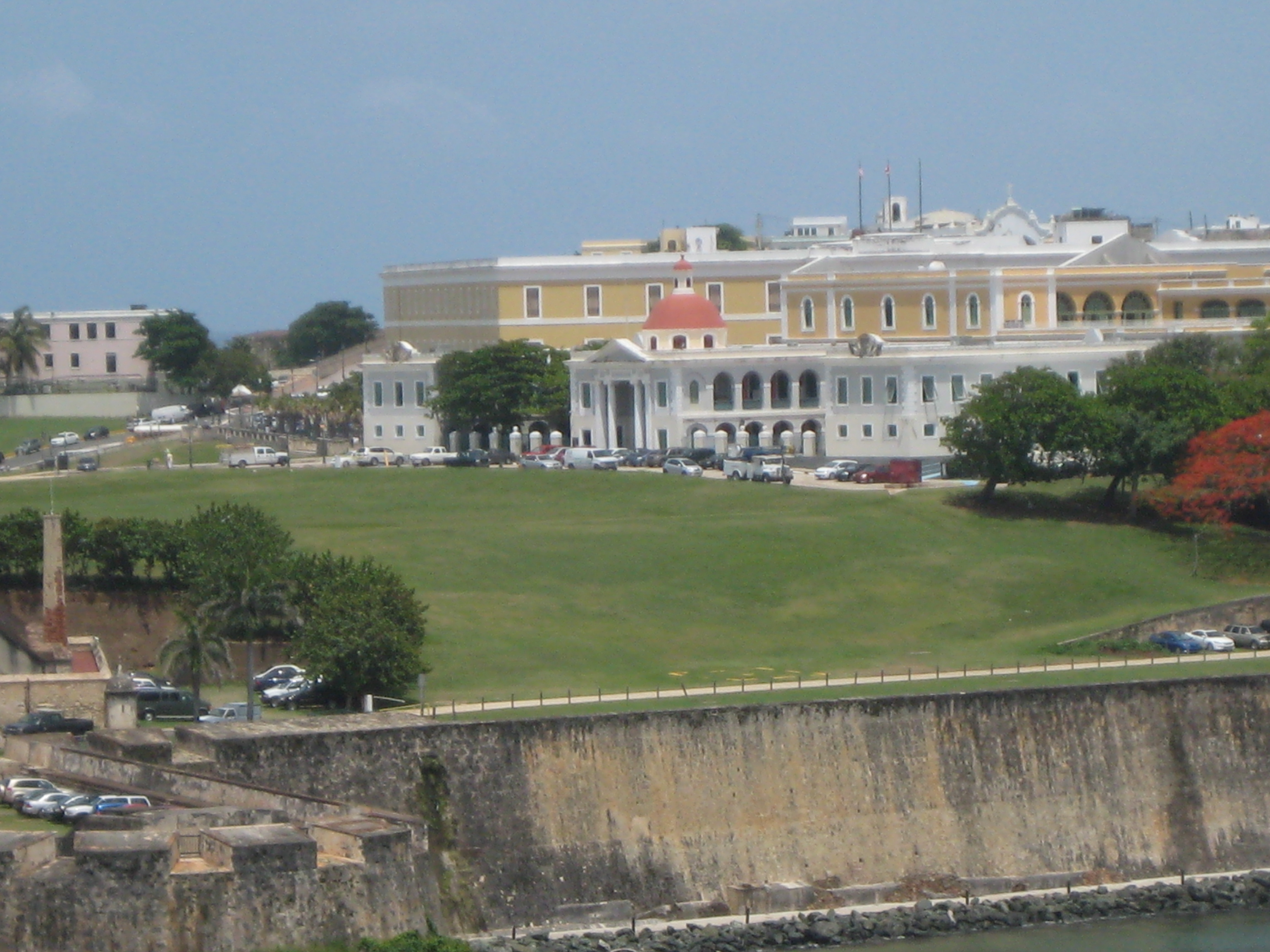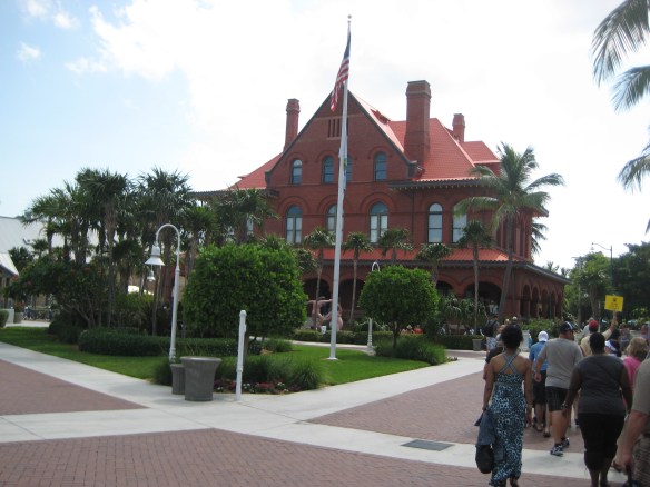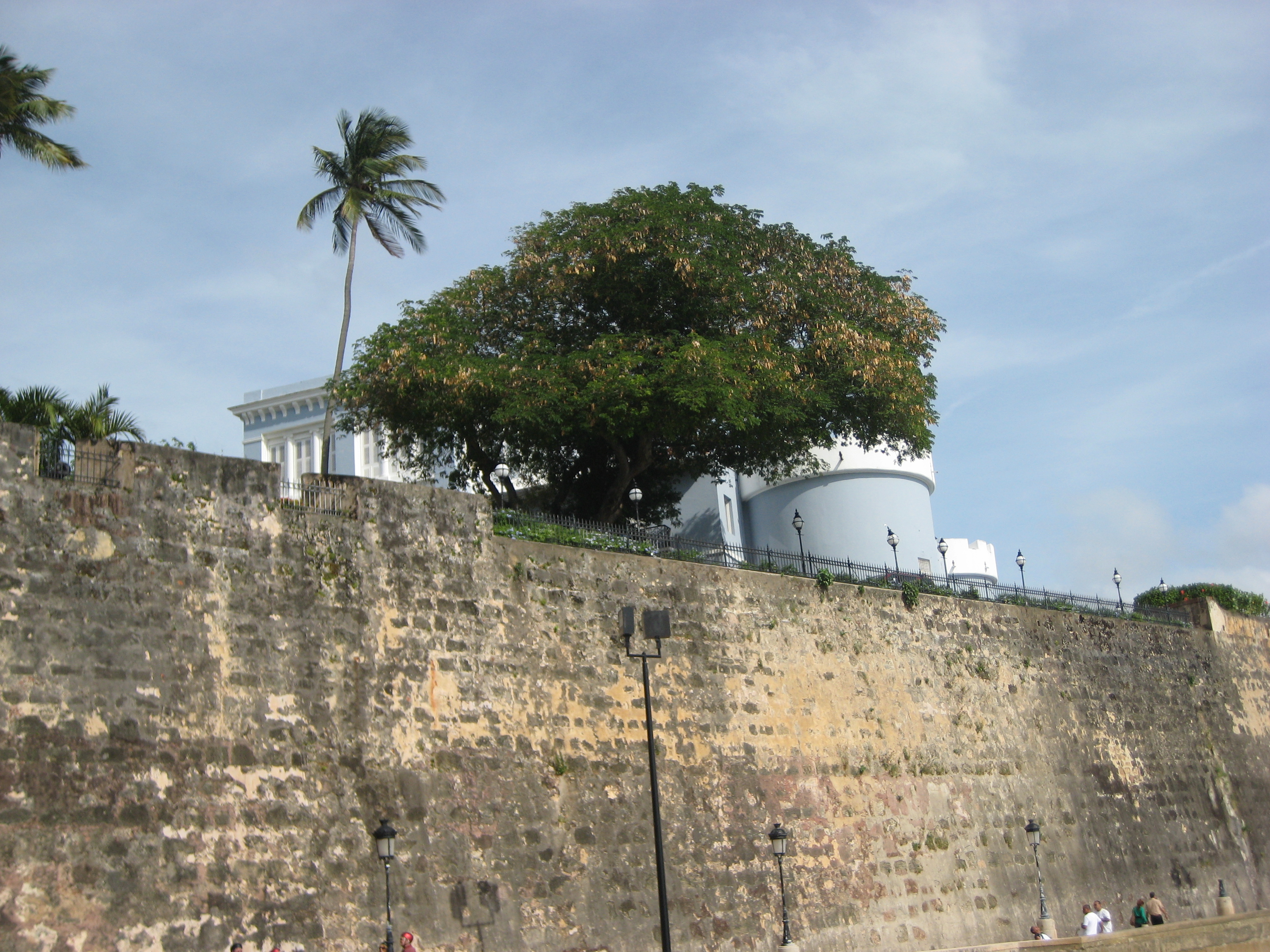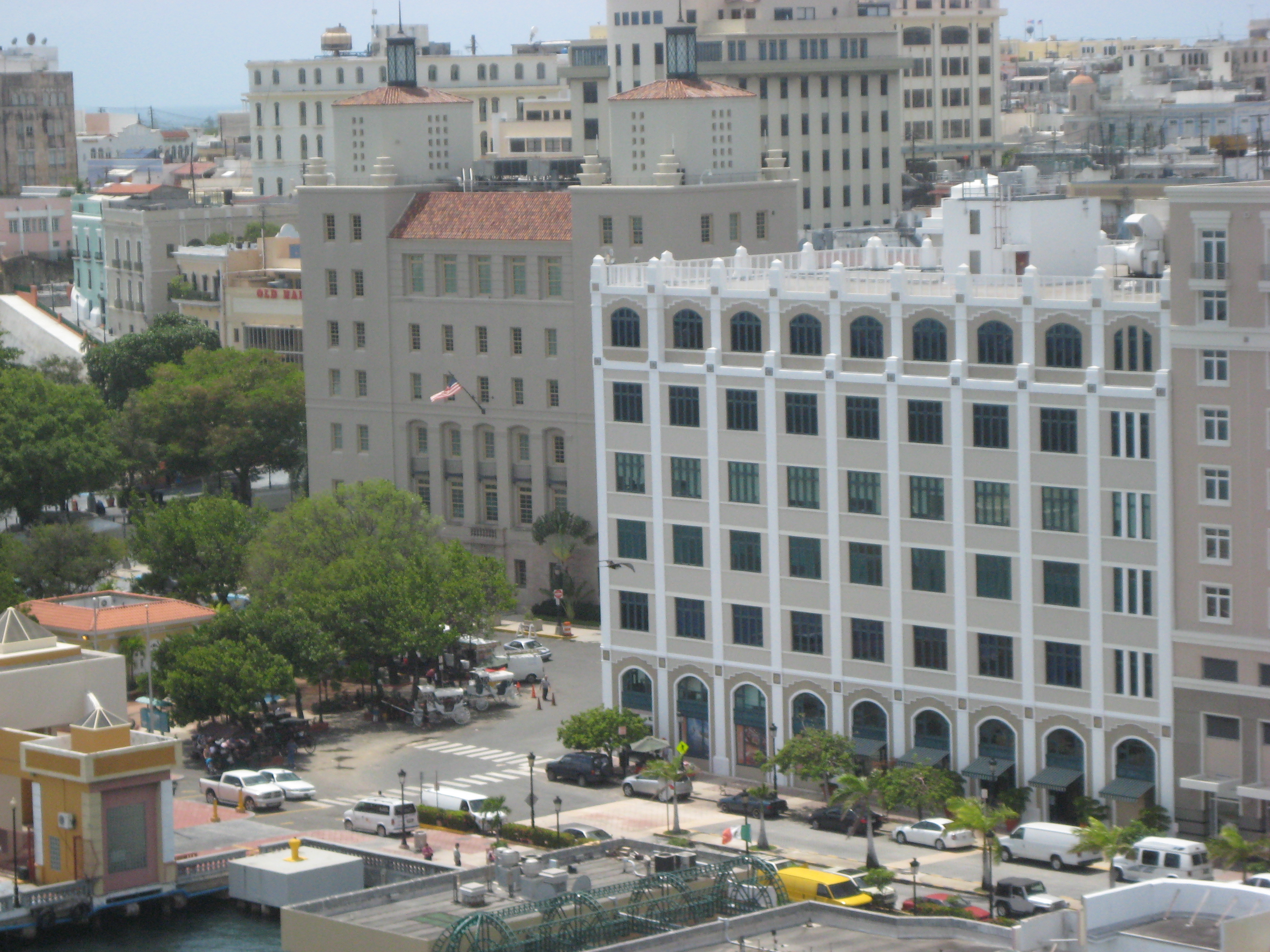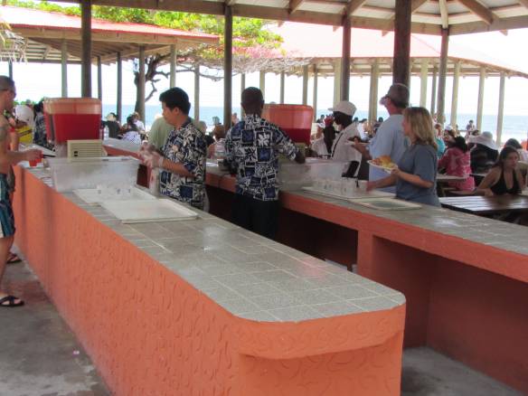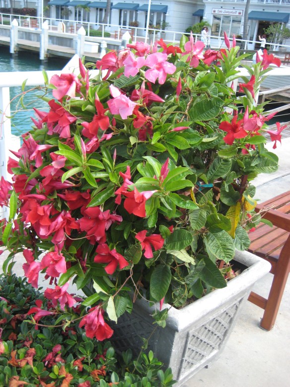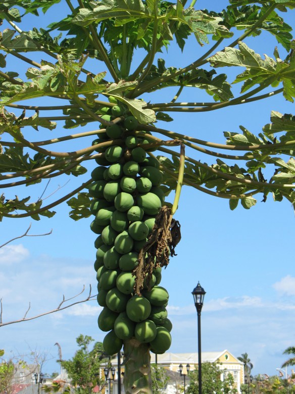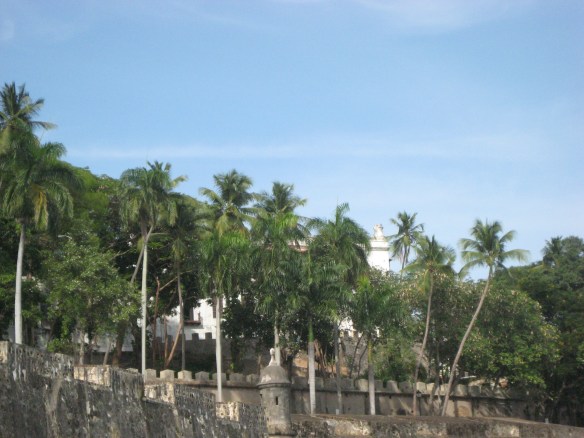 Prachtig gezicht, het witte van het schip tegen die felblauwe lucht en het groen van de palmen…Hier ligt ze aan de kade in Charlotte Amalie