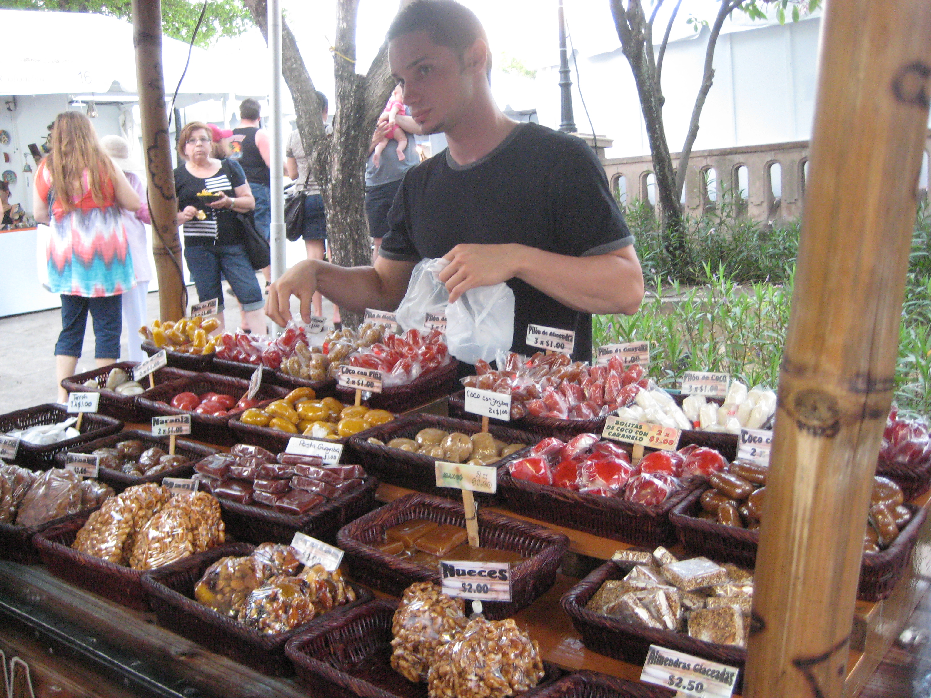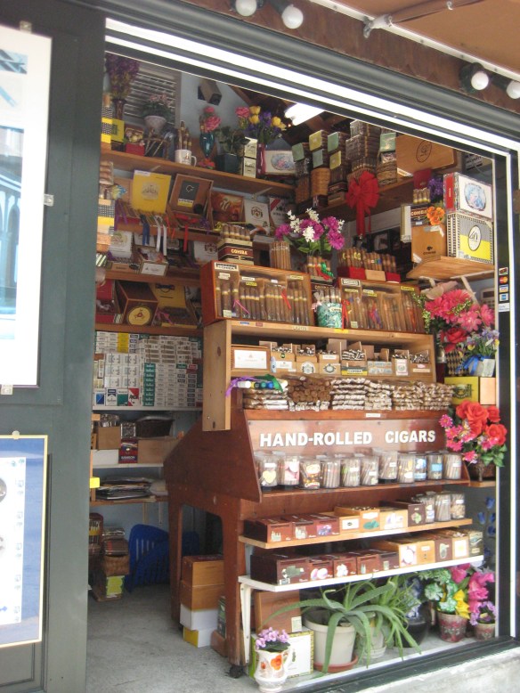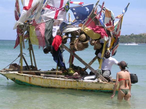 Weer eens wat anders dan een straatventer…Deze vrouw is zo te zien geïnteresseerd in de bonte verzameling van koopwaar!