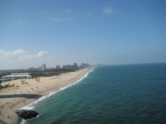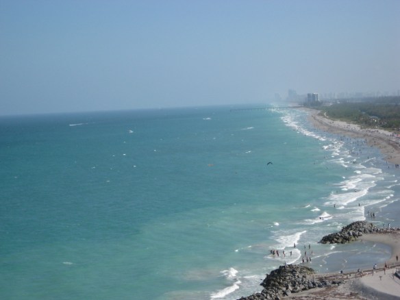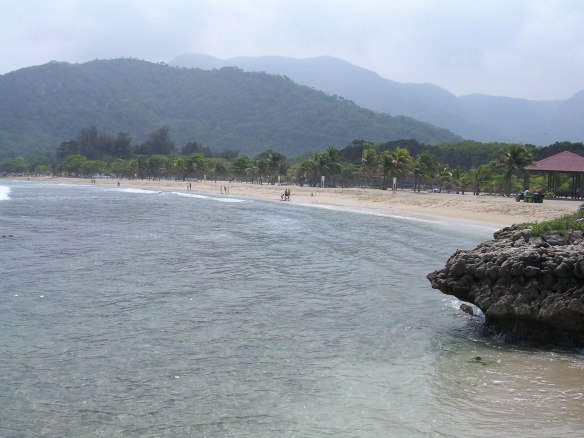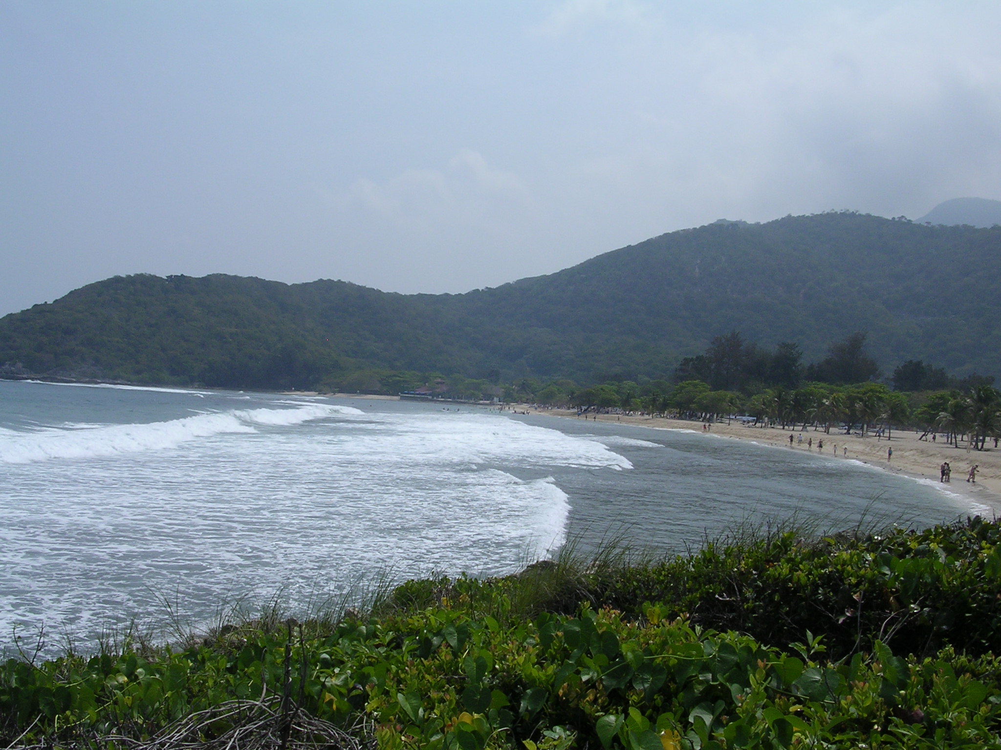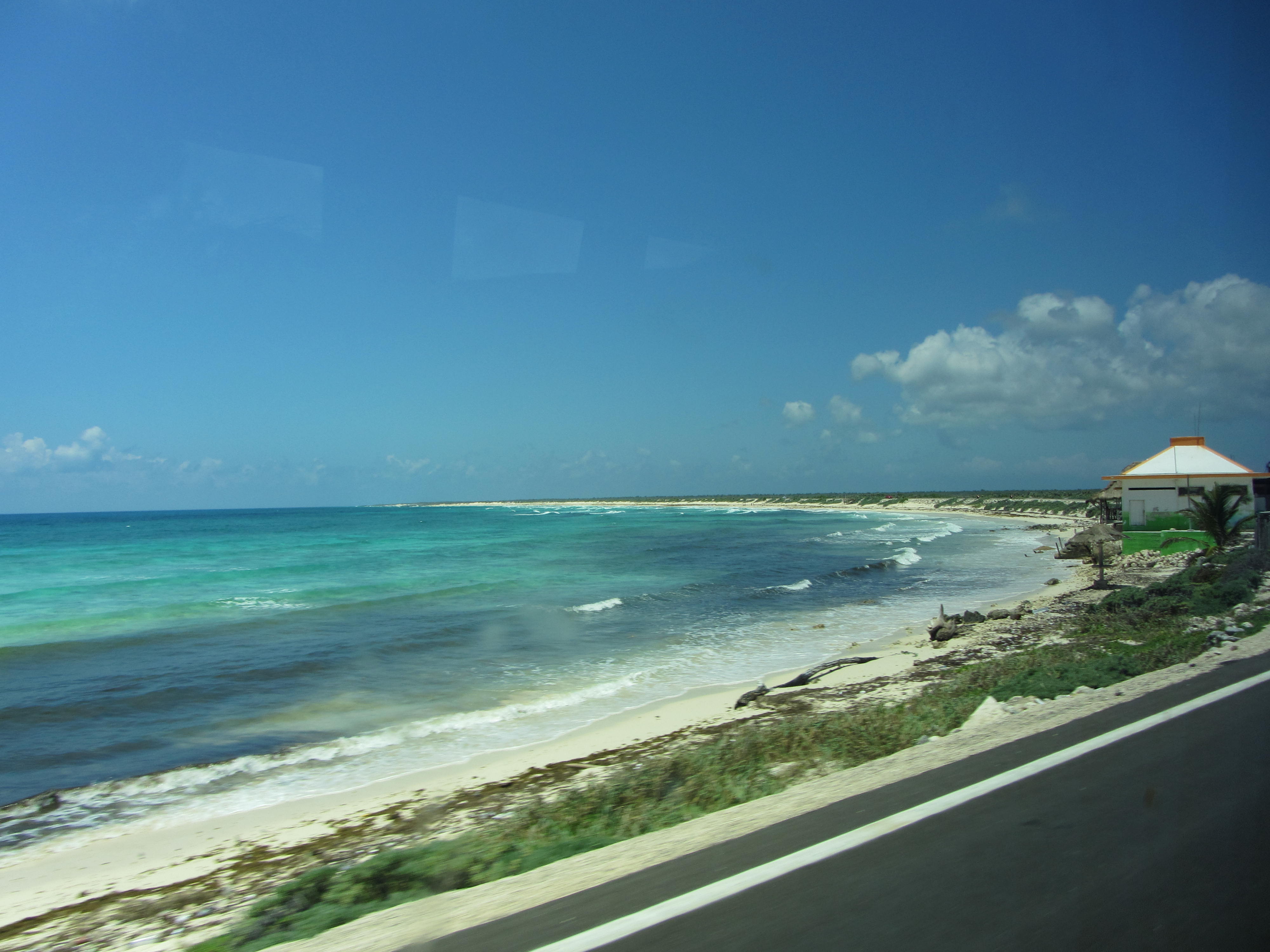 Prachtig strand gezien vanuit de bus. Overigens: in verband met zeer gevaarlijke stromingen kun je hier maar beter niet de zee in gaan.