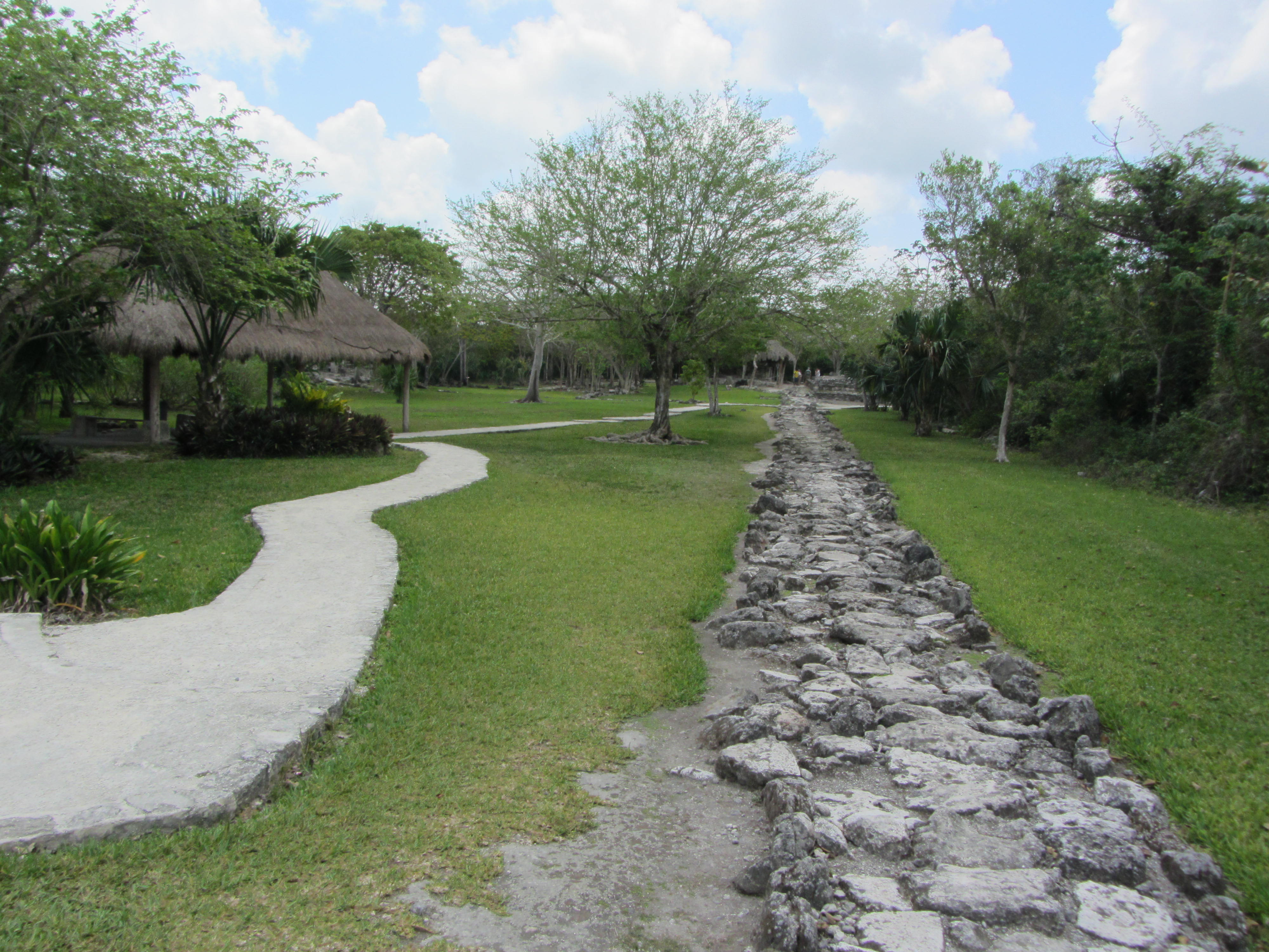 Hier zie je nog een deel van het originele, door de Maya’s aangelegde, pad dat oorspronkelijk helemaal vanaf de oceaan, waar ze aan land zijn gekomen, tot hier liep.