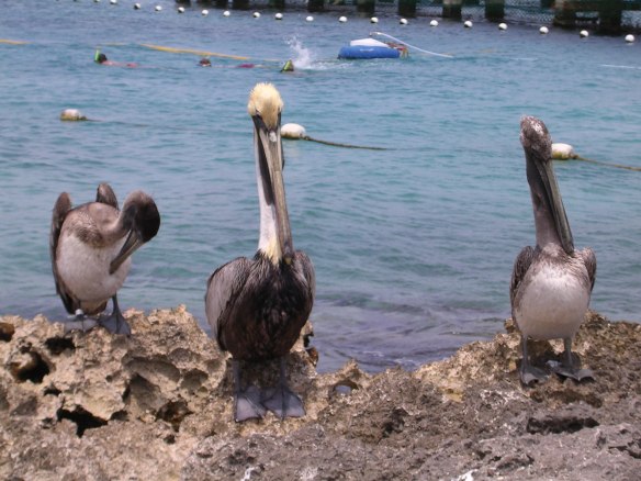 Bruine pelikanen, ik vind het énige beesten. Heel aandoenlijk.
