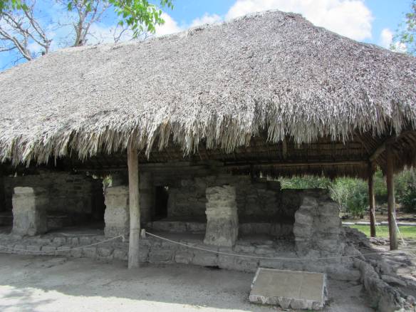 Hier zie je een van de ruïnes van binnen. Het is relatief goed bewaard gebleven. Dit was een plek waarvan de Maya’s dachten dat daar vruchtbaarheid kon worden verkregen. In deze tempel mochten alleen maar vrouwen naar binnen.