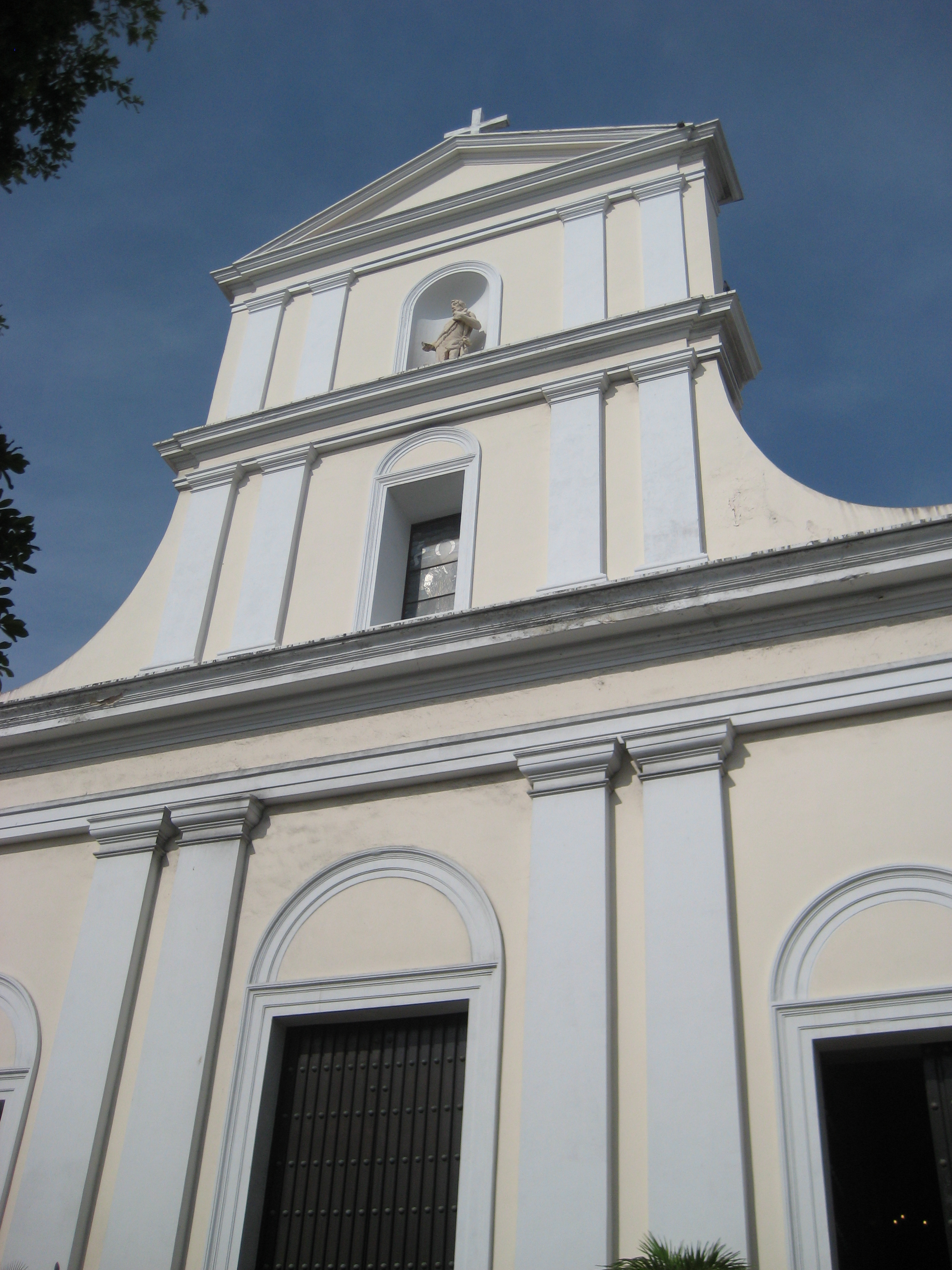Mooi contrast tussen het wit van deze kerk en de staalblauwe lucht