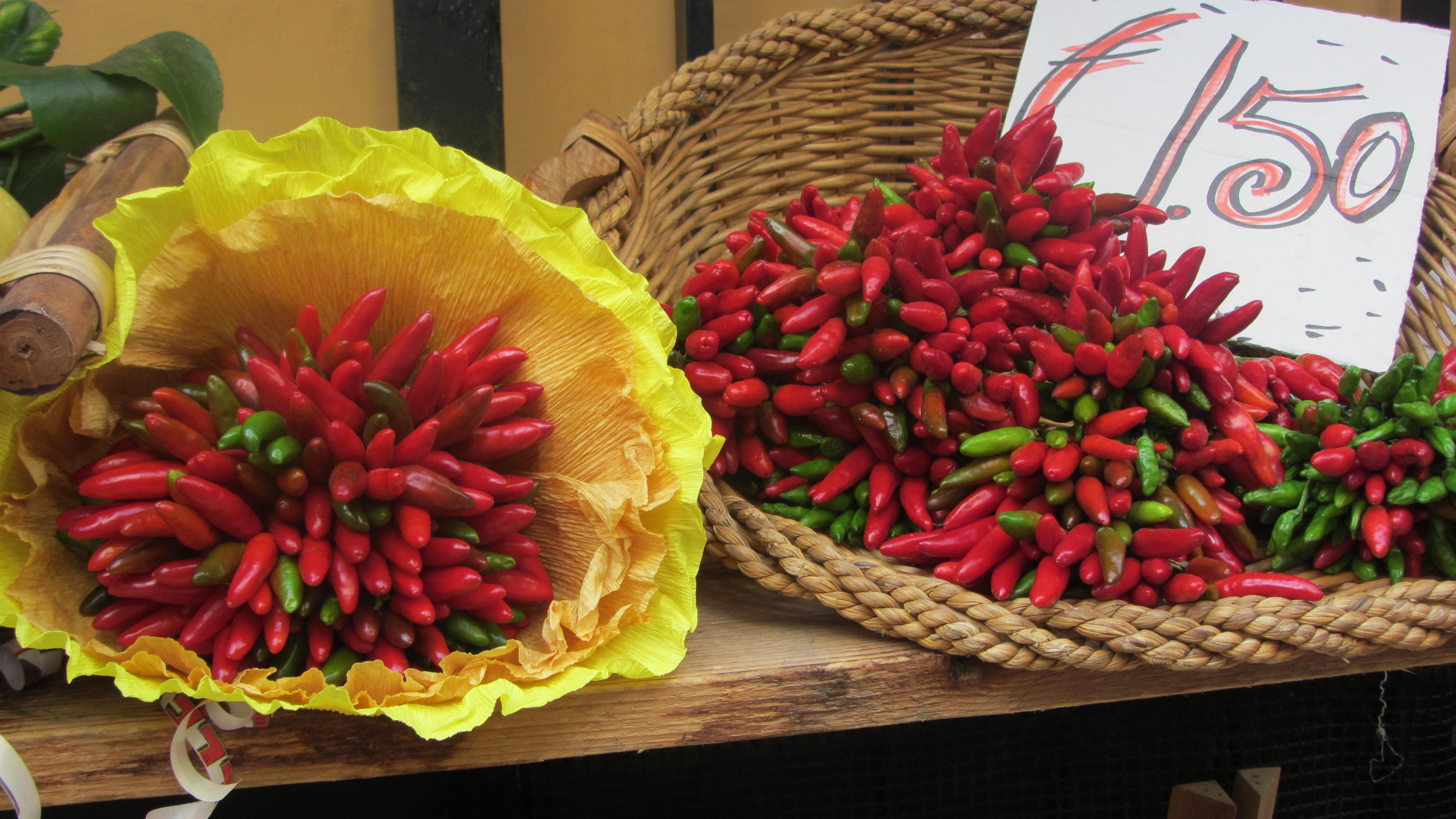 Rode pepers kunstig verpakt als bloemen