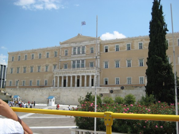 Het parlementsgebouw met op de voorgrond het Syntagma plein