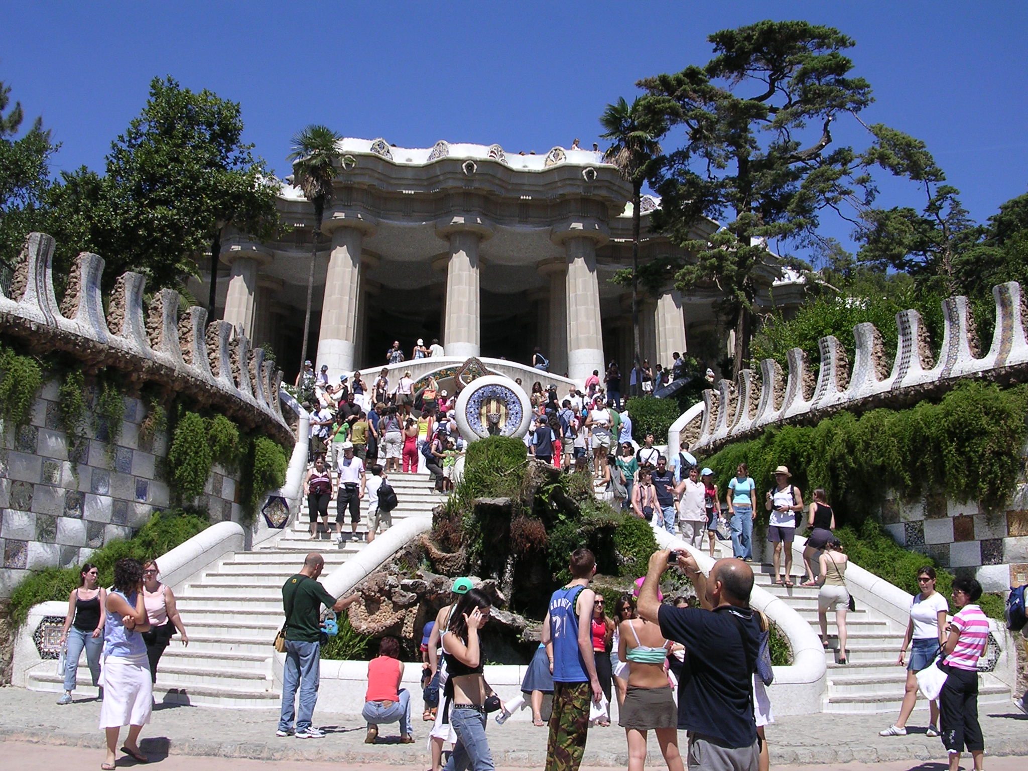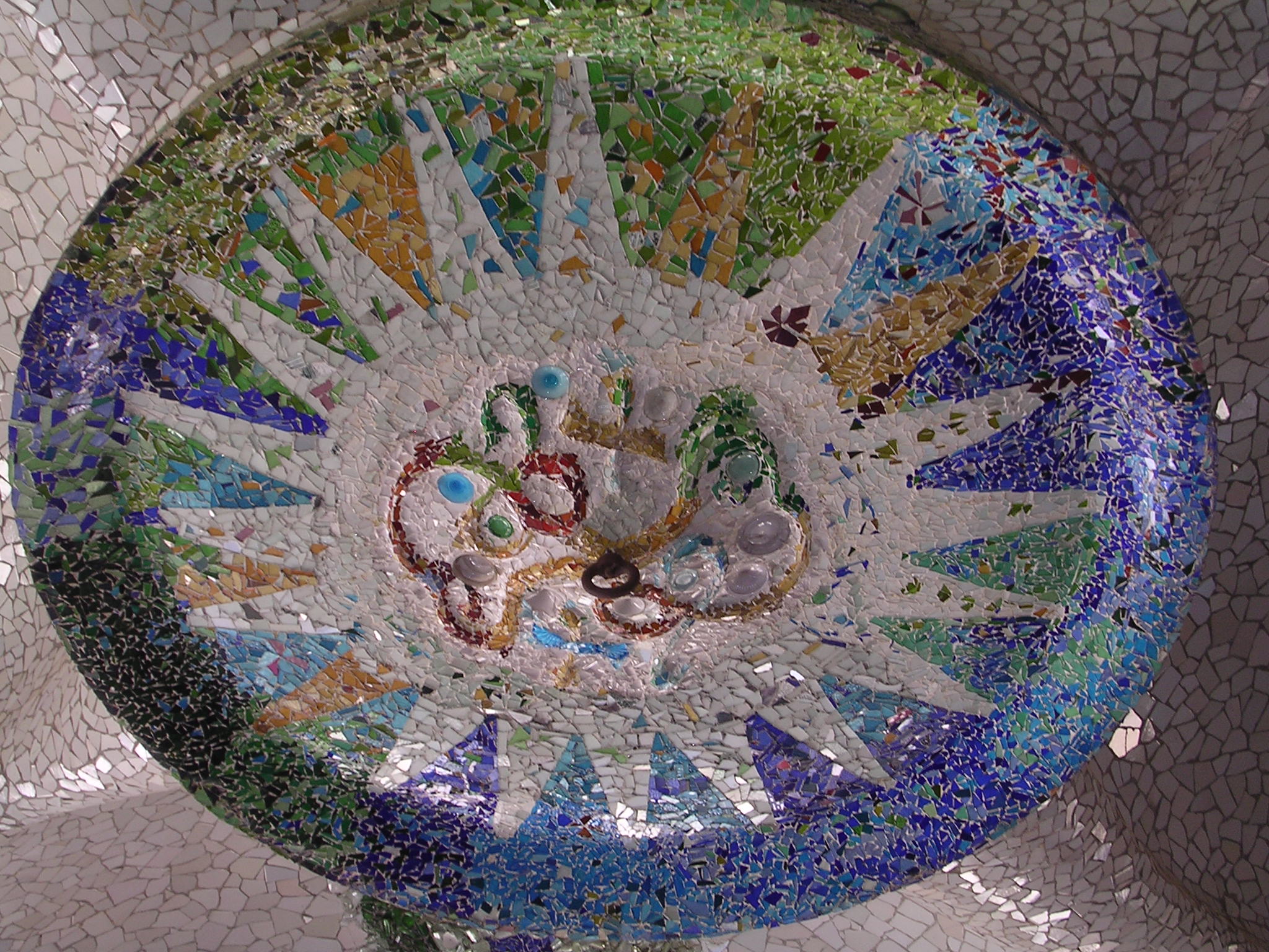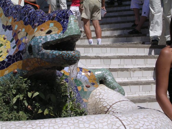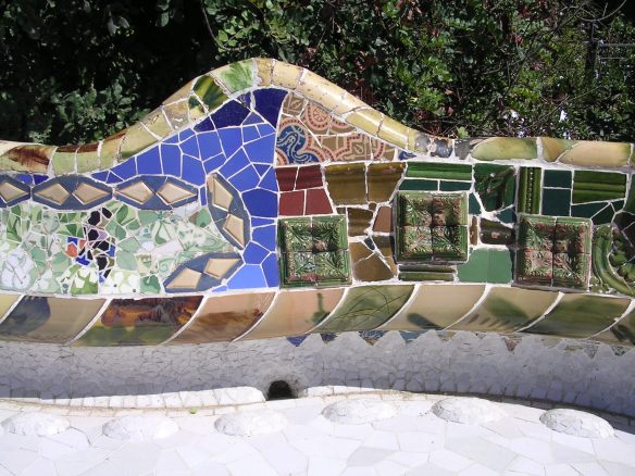 Bankje van Gaudí in Parc Guell (spreek uit: “gweij”), dat zeer de moeite waard is om te bezoeken