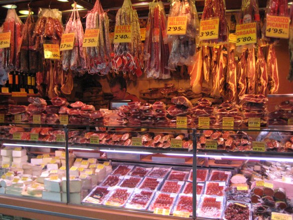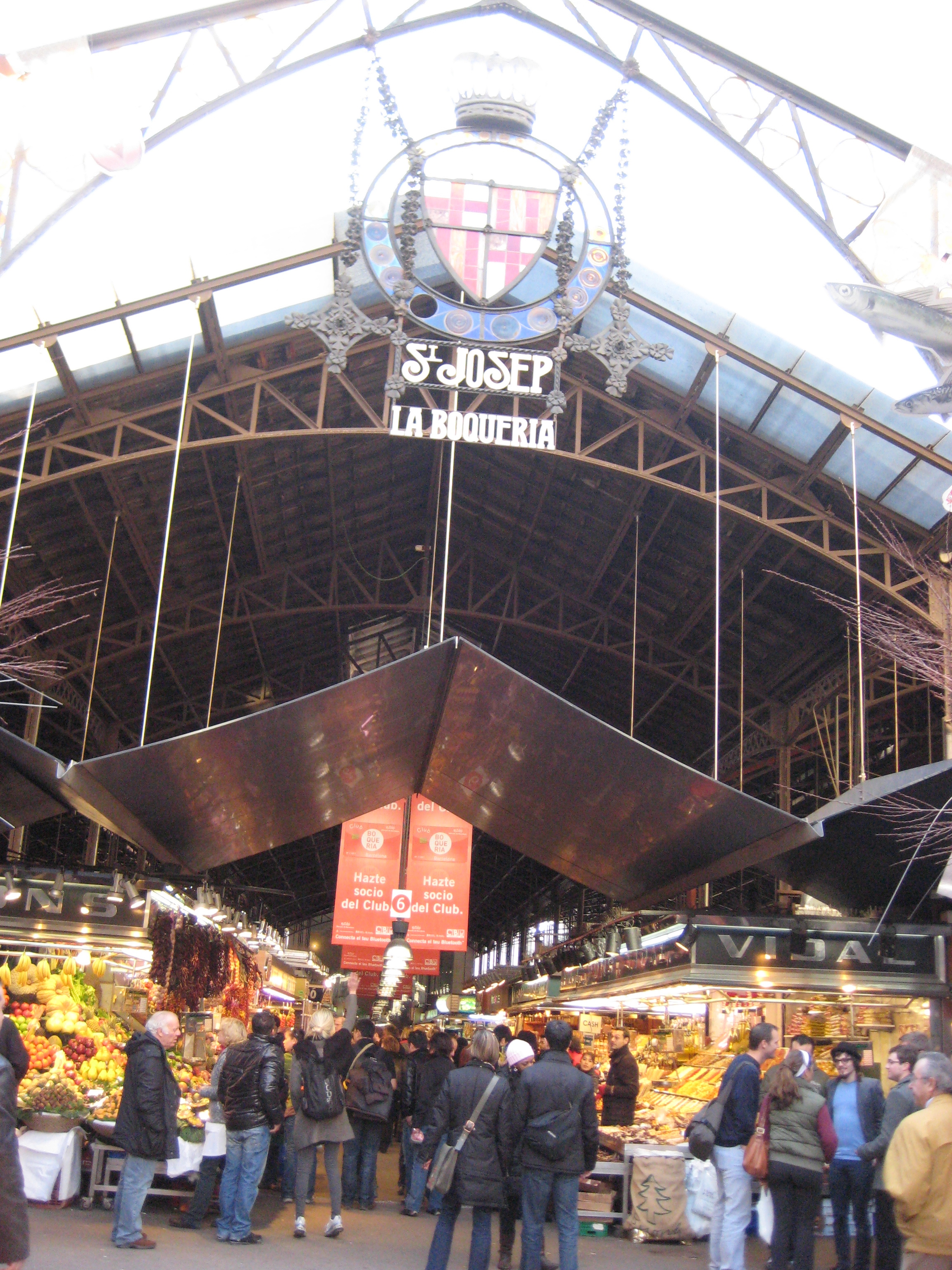 De bekende overdekte markt La Boqueria, gelegen aan de Rambla