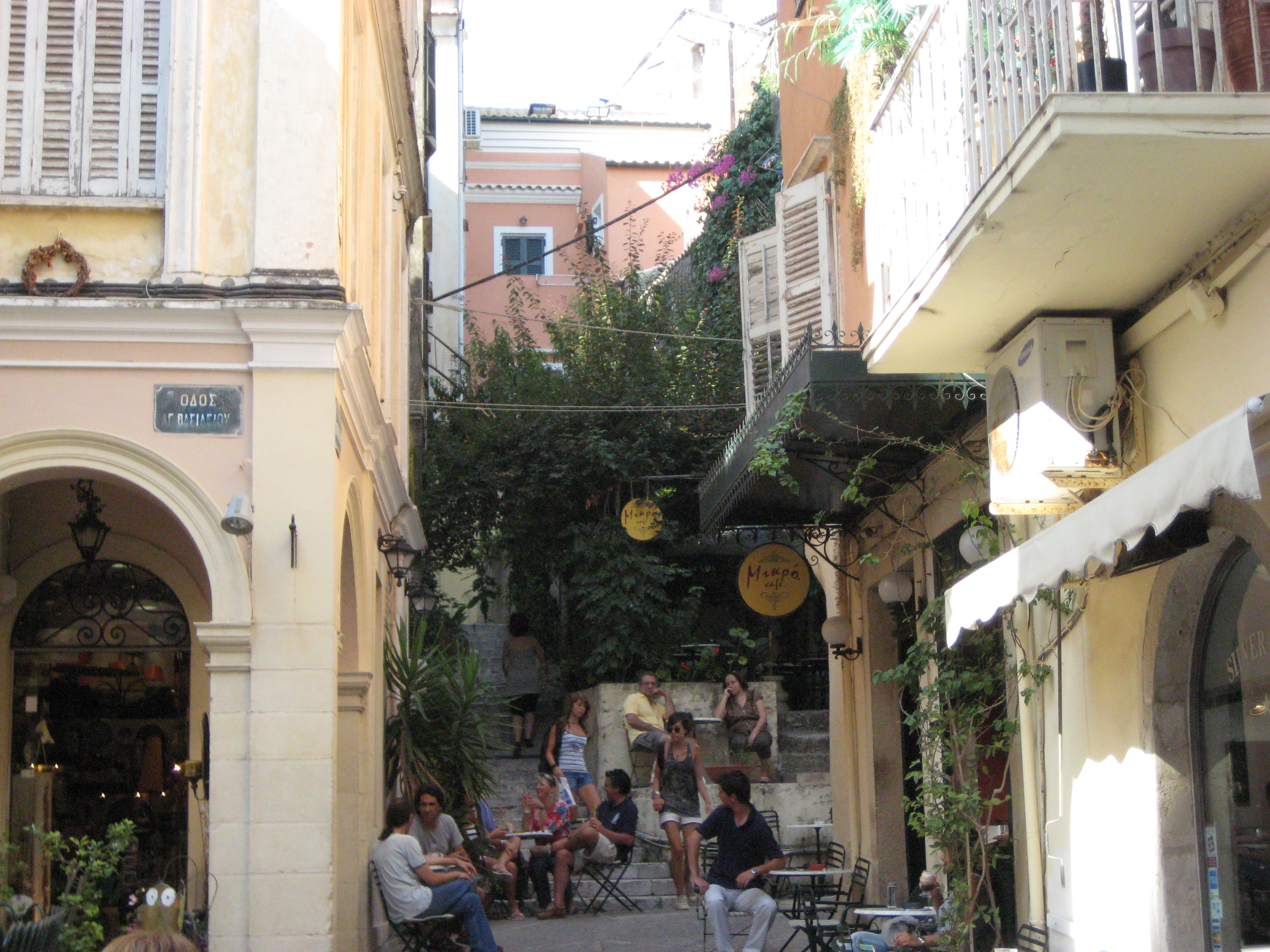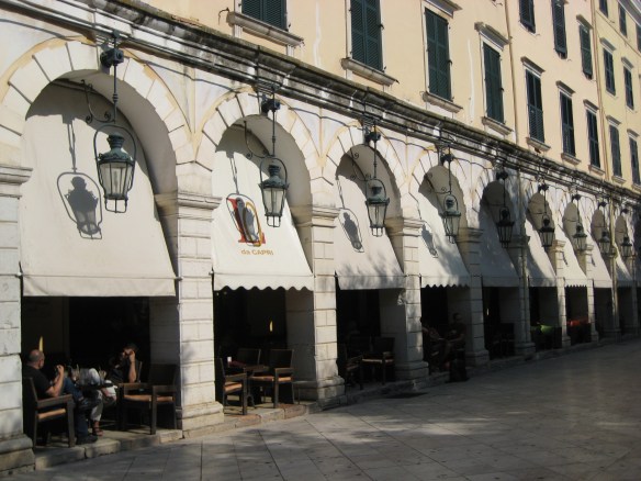 Mooie galerij met terrassen in Corfu-stad