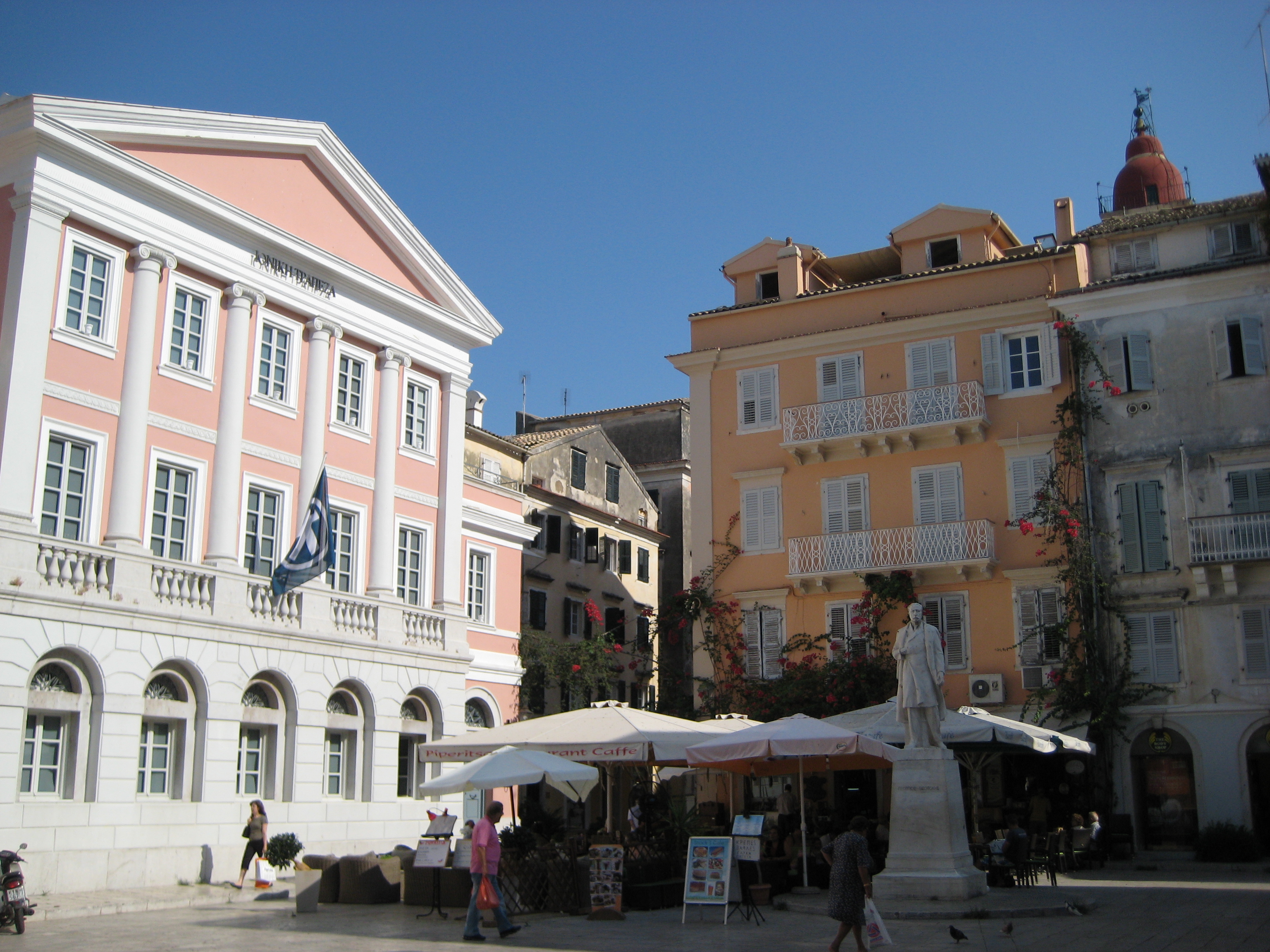 Corfu Ook wel genoemd een van de minst Griekse eilanden omdat hier geen ruïnes te vinden zijn uit de oudheid. Corfu heeft gedurende 600 jaar deel uitgemaakt van het Romeinse Rijk. Het eiland is mooi en vrij groen en heeft een gezellige hoofdstad, Corfu-stad met 35.000 inwoners. Er heerst een kosmopolitische sfeer die te danken is aan de vele buitenlandse invloeden. De terrassen die grenzen aan de Esplanade zijn geïnspireerd op de Rue de Rivoli in Parijs.