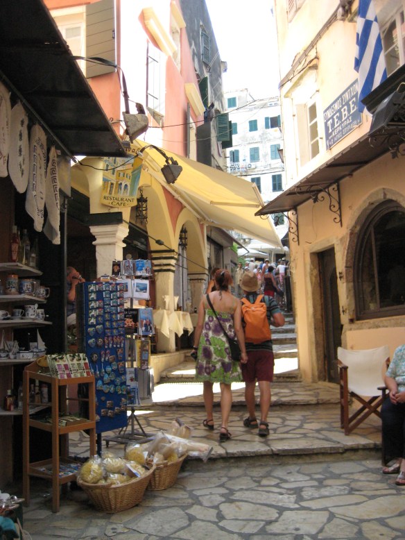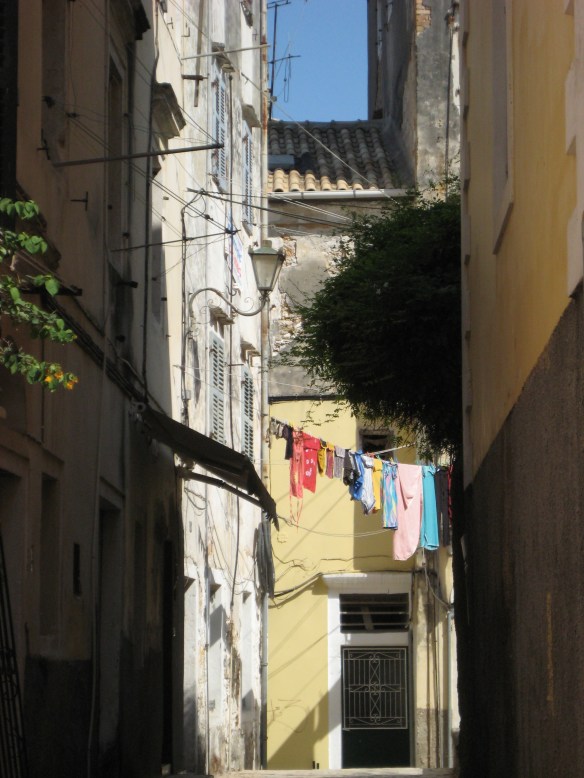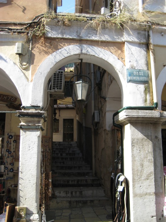 Schilderachtig straatbeeld in Corfu-stad