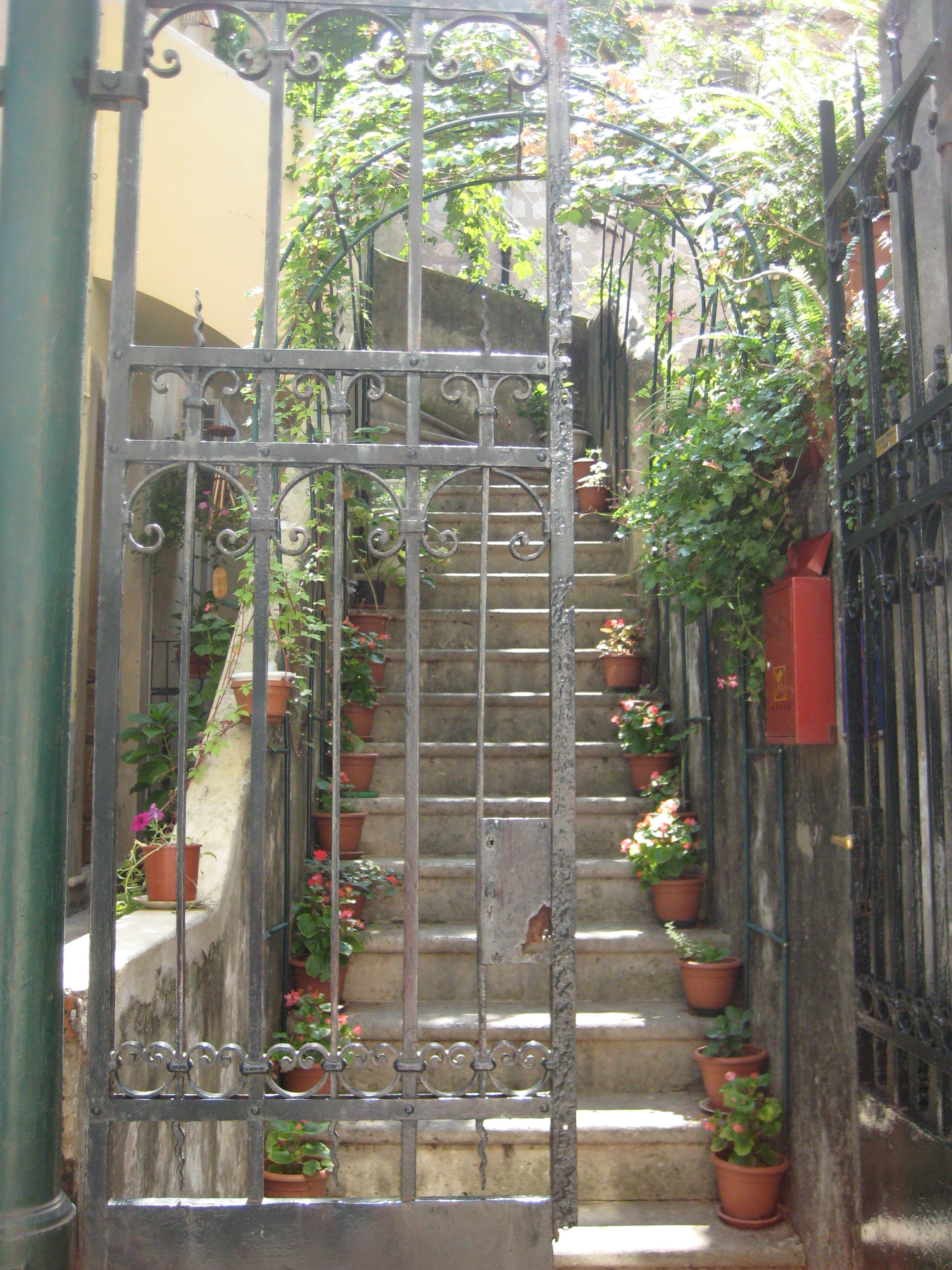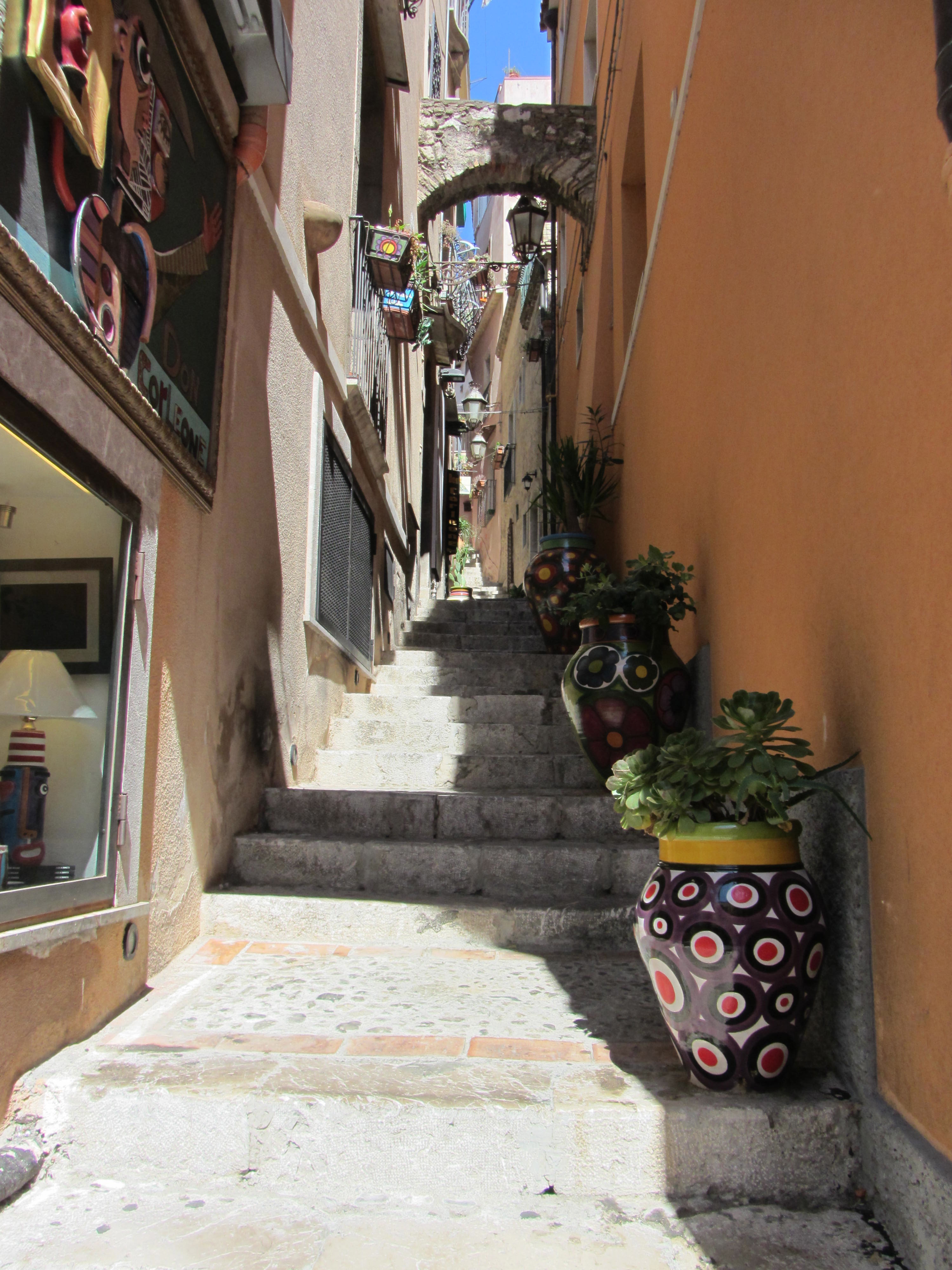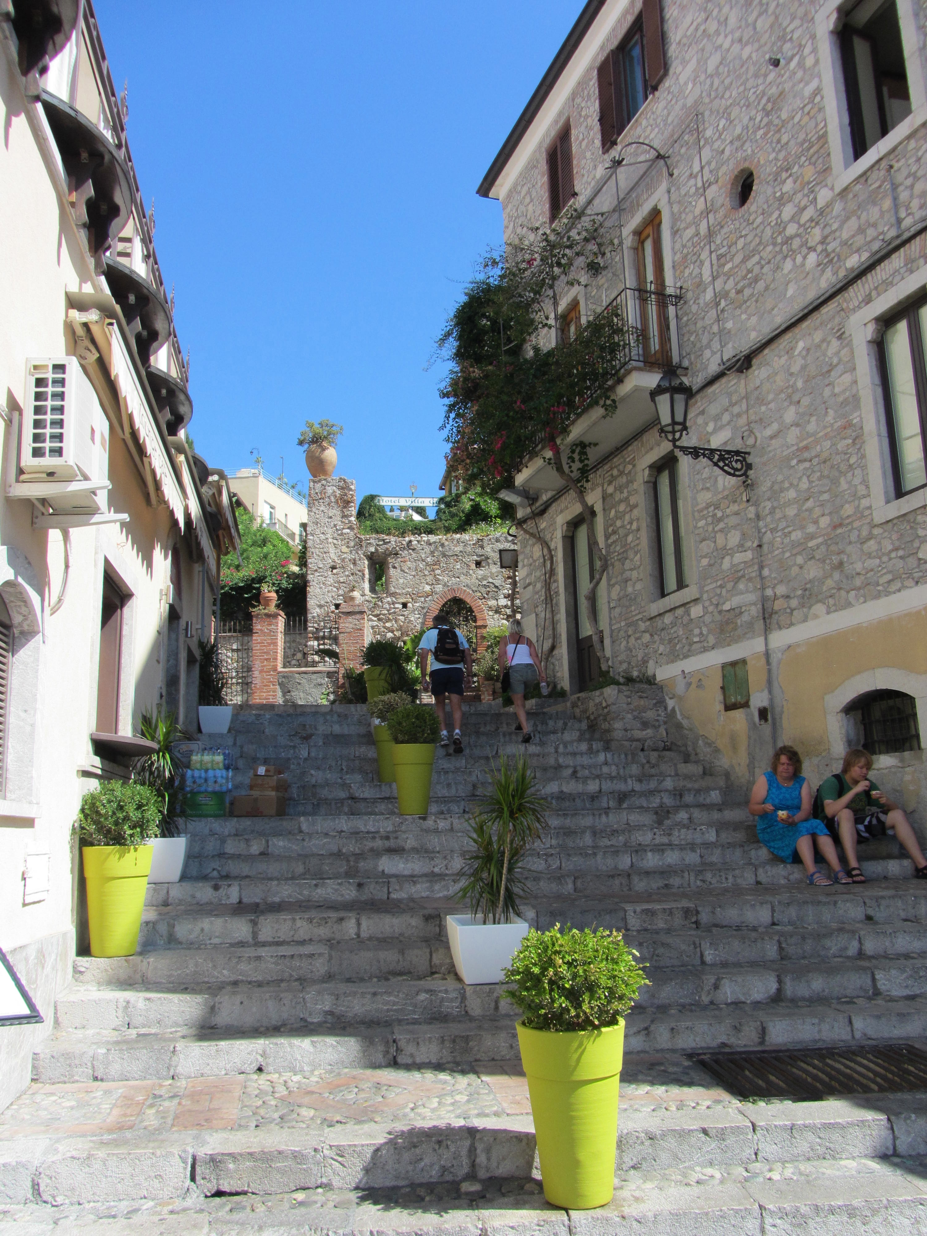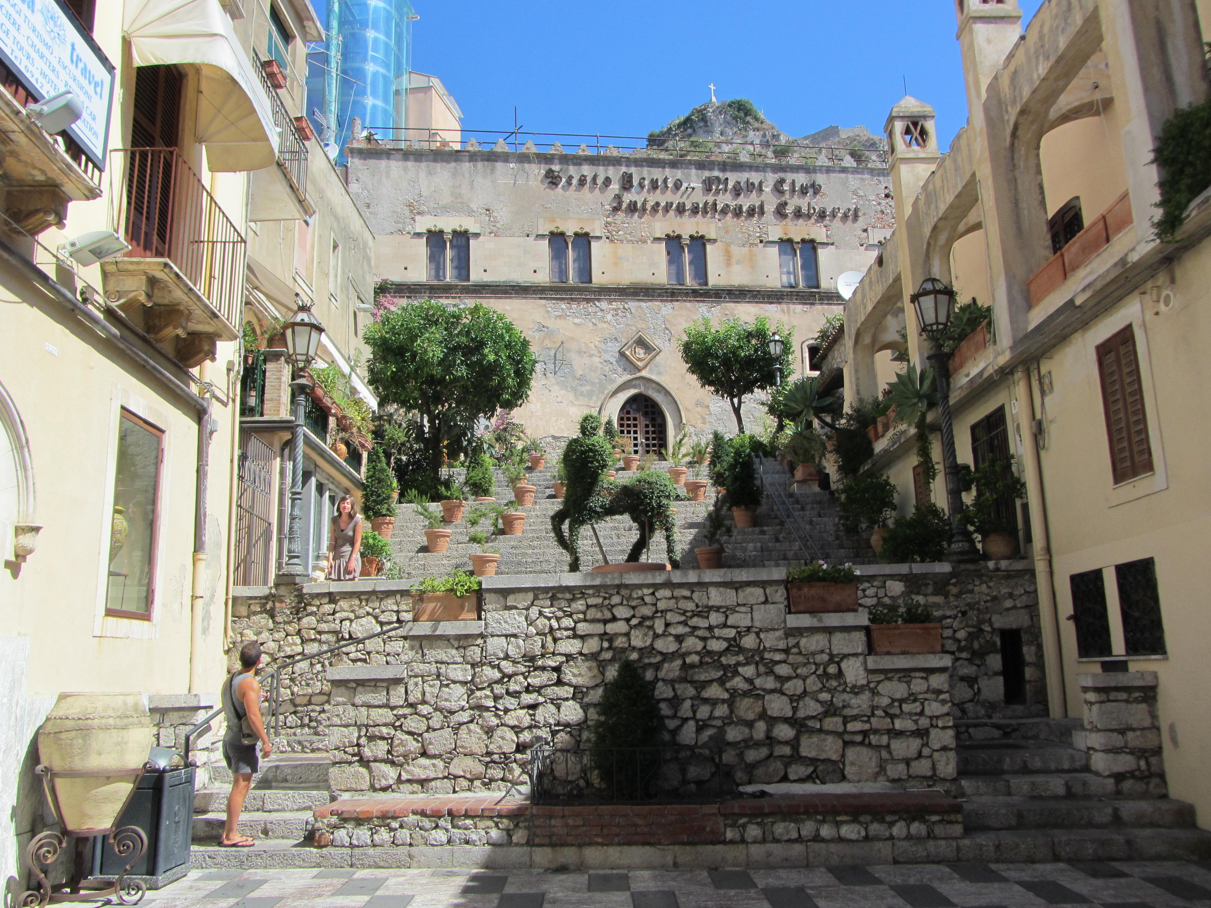 Trappartij in oude binnenstad van Taormina