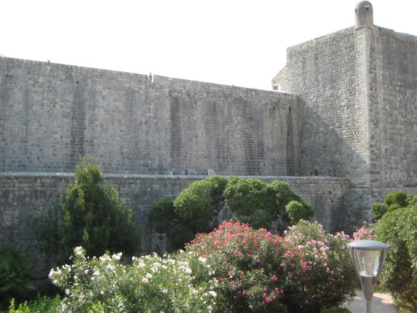 De eeuwenoude muren met op de achtergrond de kathedraal