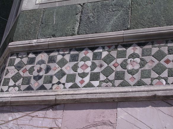 Detailopname van het gebruikte marmer voor de mozaïeken