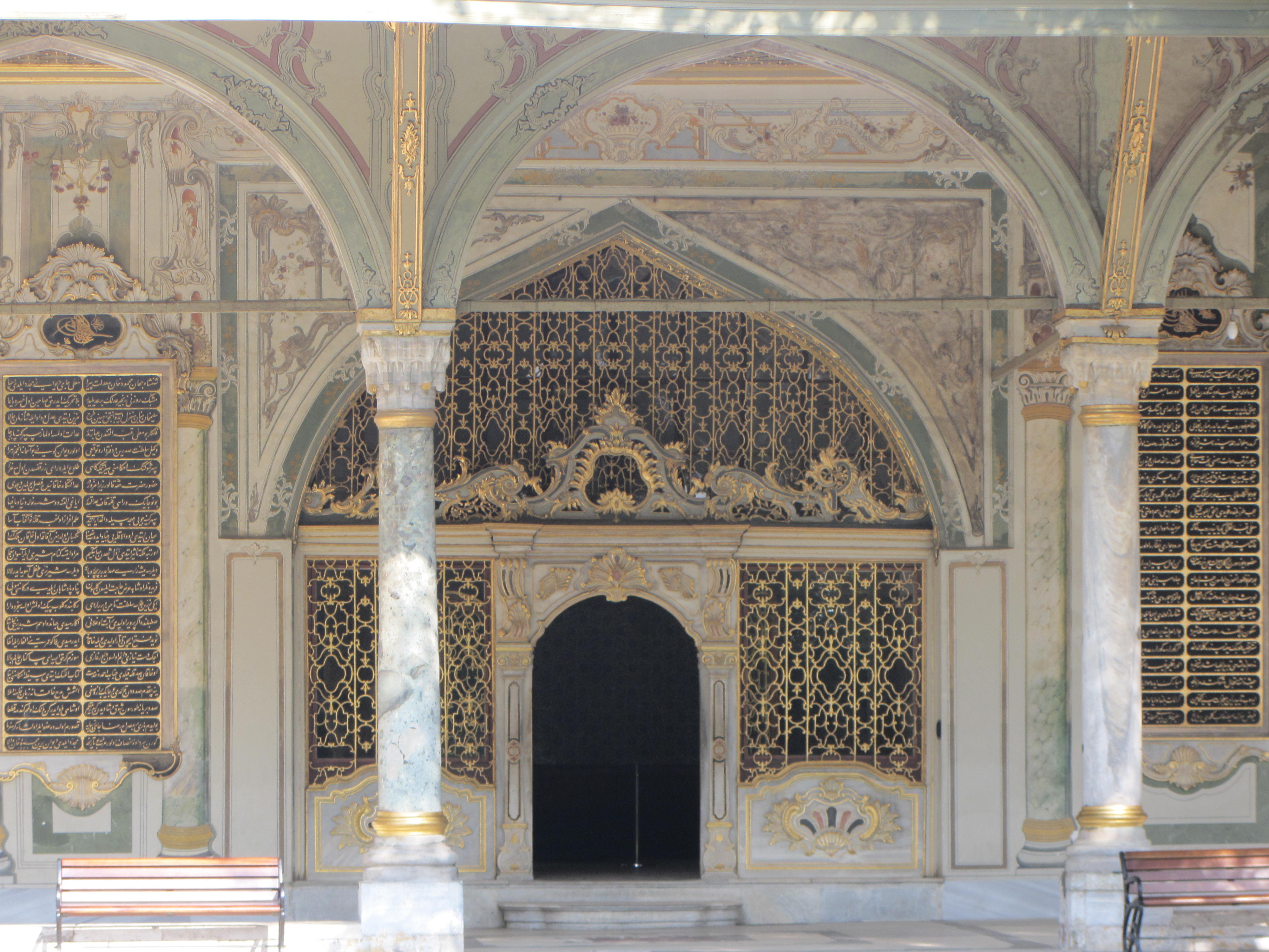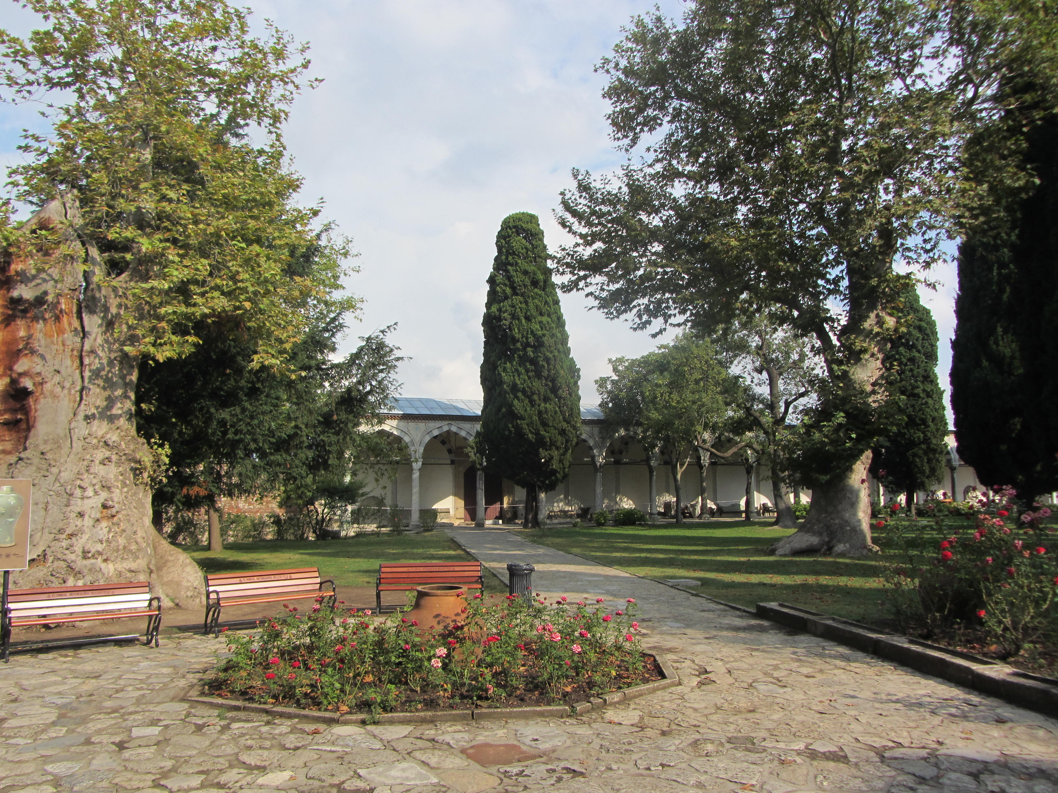 Dit indrukwekkende uitzicht op de oude stad zie je bij aankomst vanaf het achterdek, onder het genot van een lekkere cappuccino. Onderstaand zie je het Topkapi paleis van buiten en verschillende details daarvan, zowel van binnen als van de prachtige tuinen die bij het complex horen.