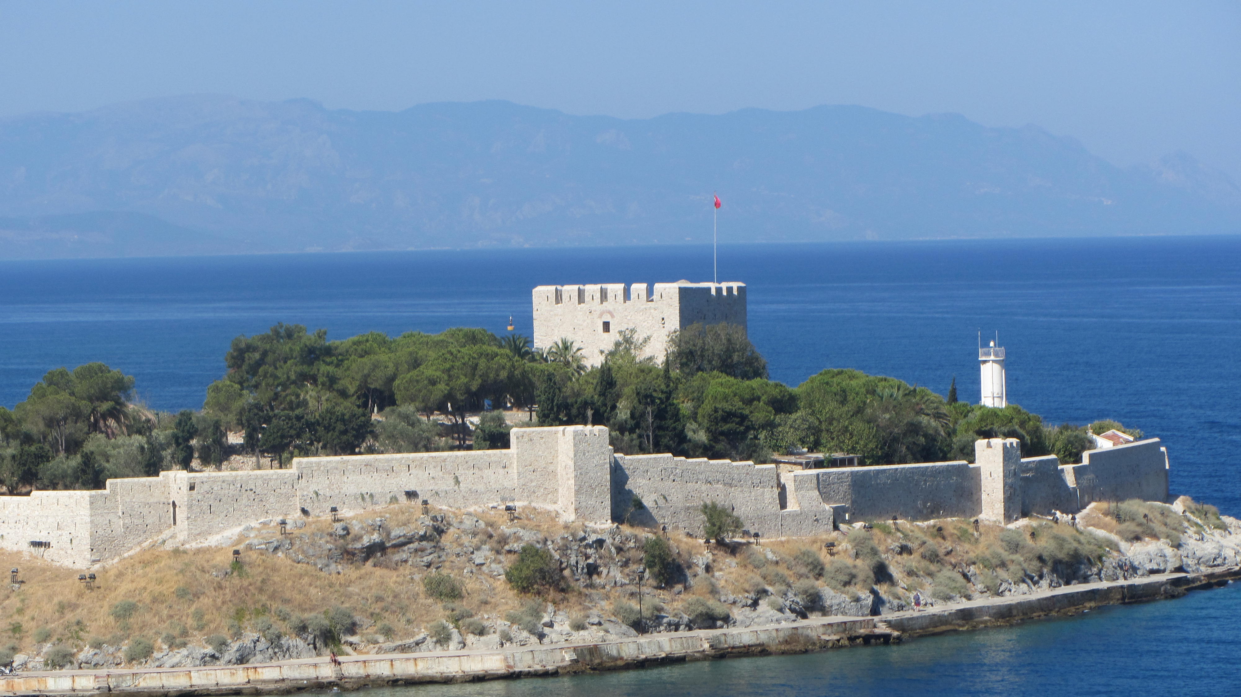 Op de achtergrond de oude stad met het fort