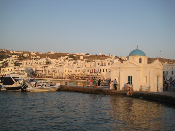 Mykonos in het vroege avondlicht