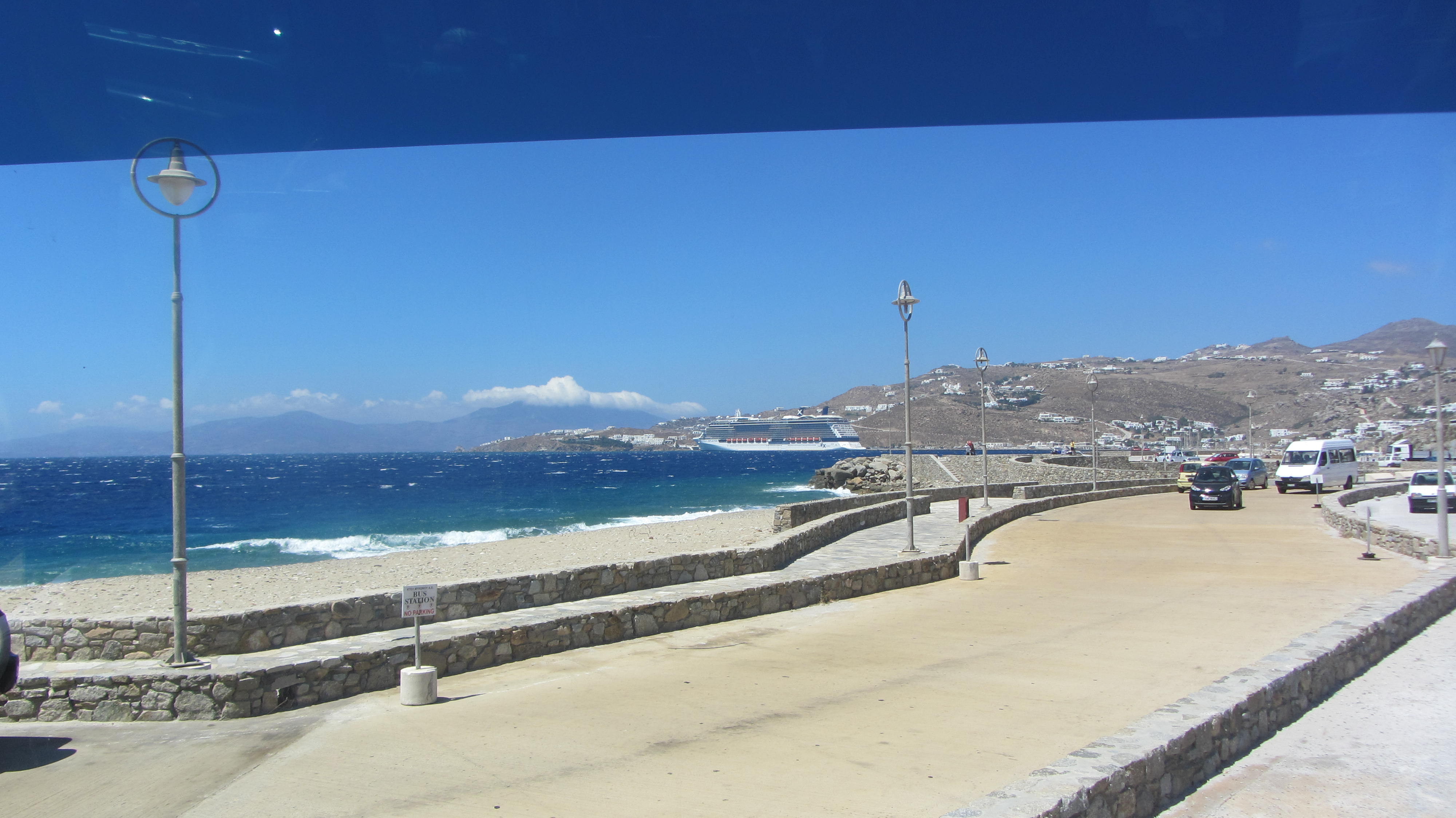 Daarachter ligt ons schip, de prachtige Celebrity Reflection!