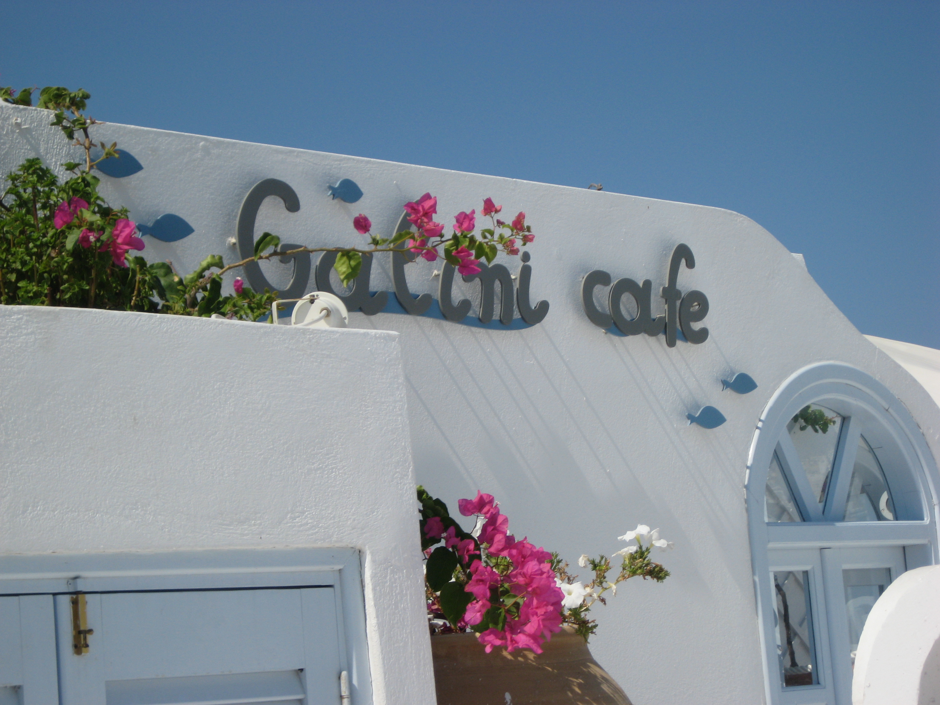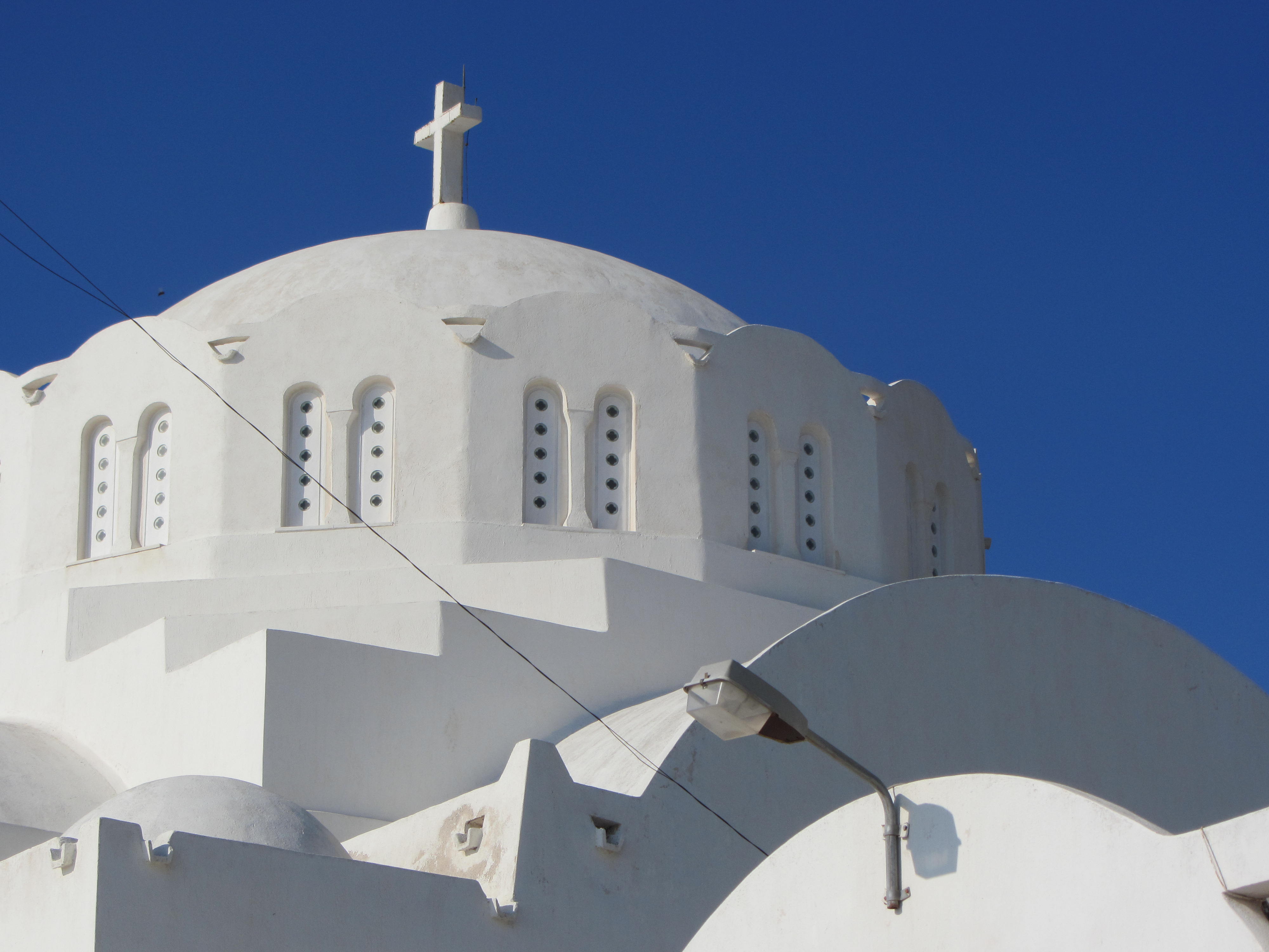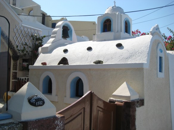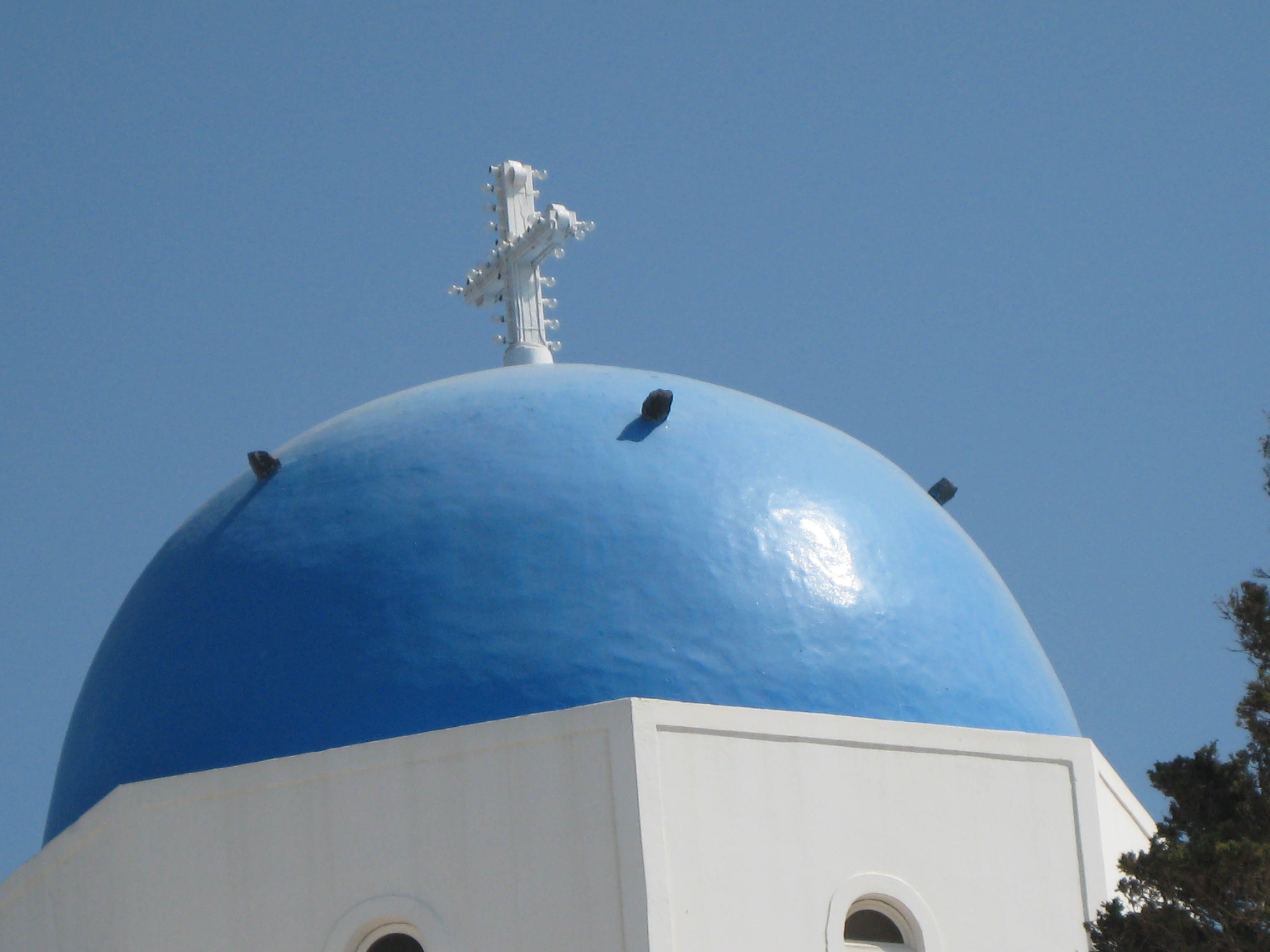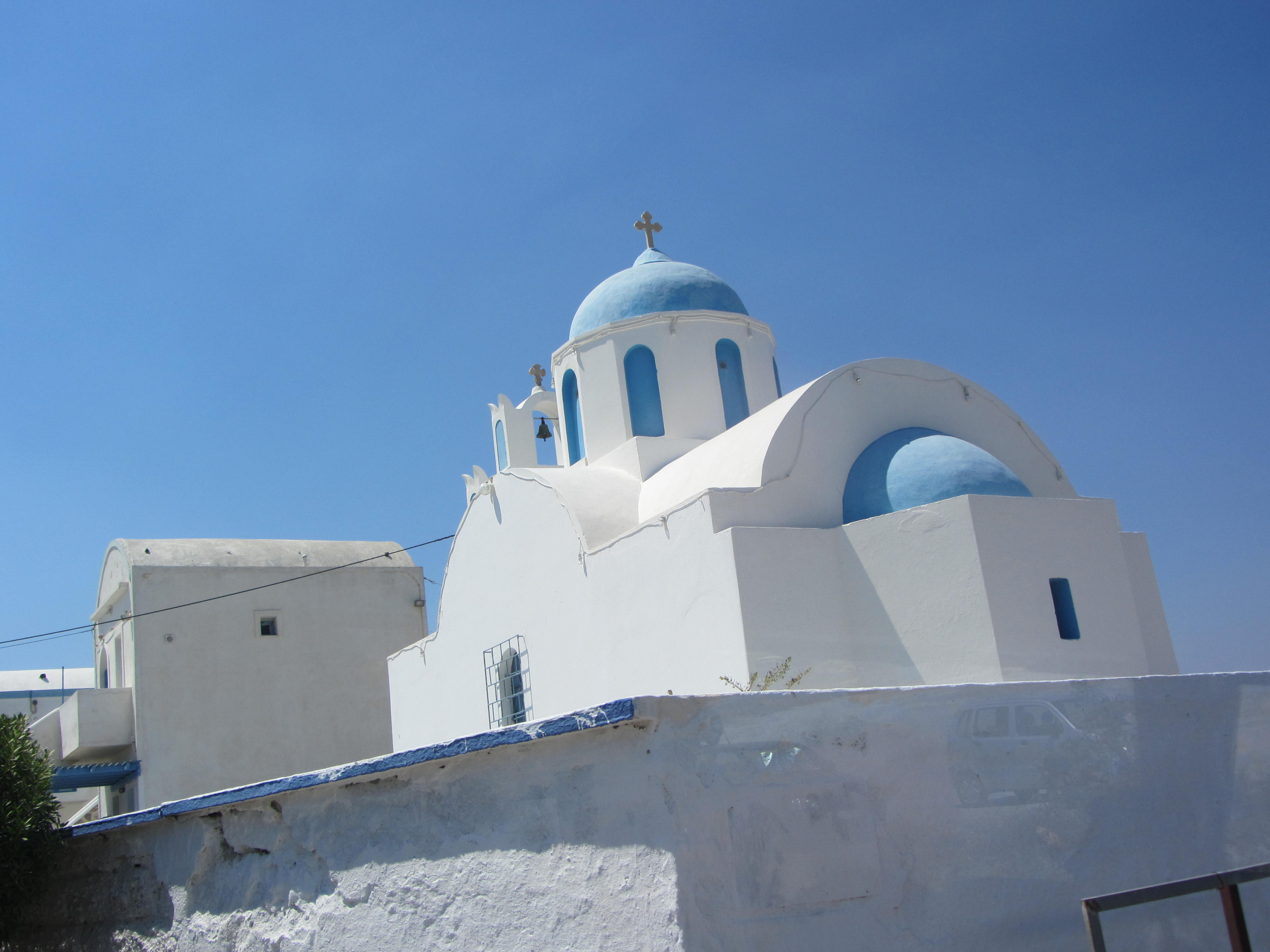 Hier is die dan, de wereldberoemde blauwe koepel die dezelfde kleur heeft als de Griekse hemel