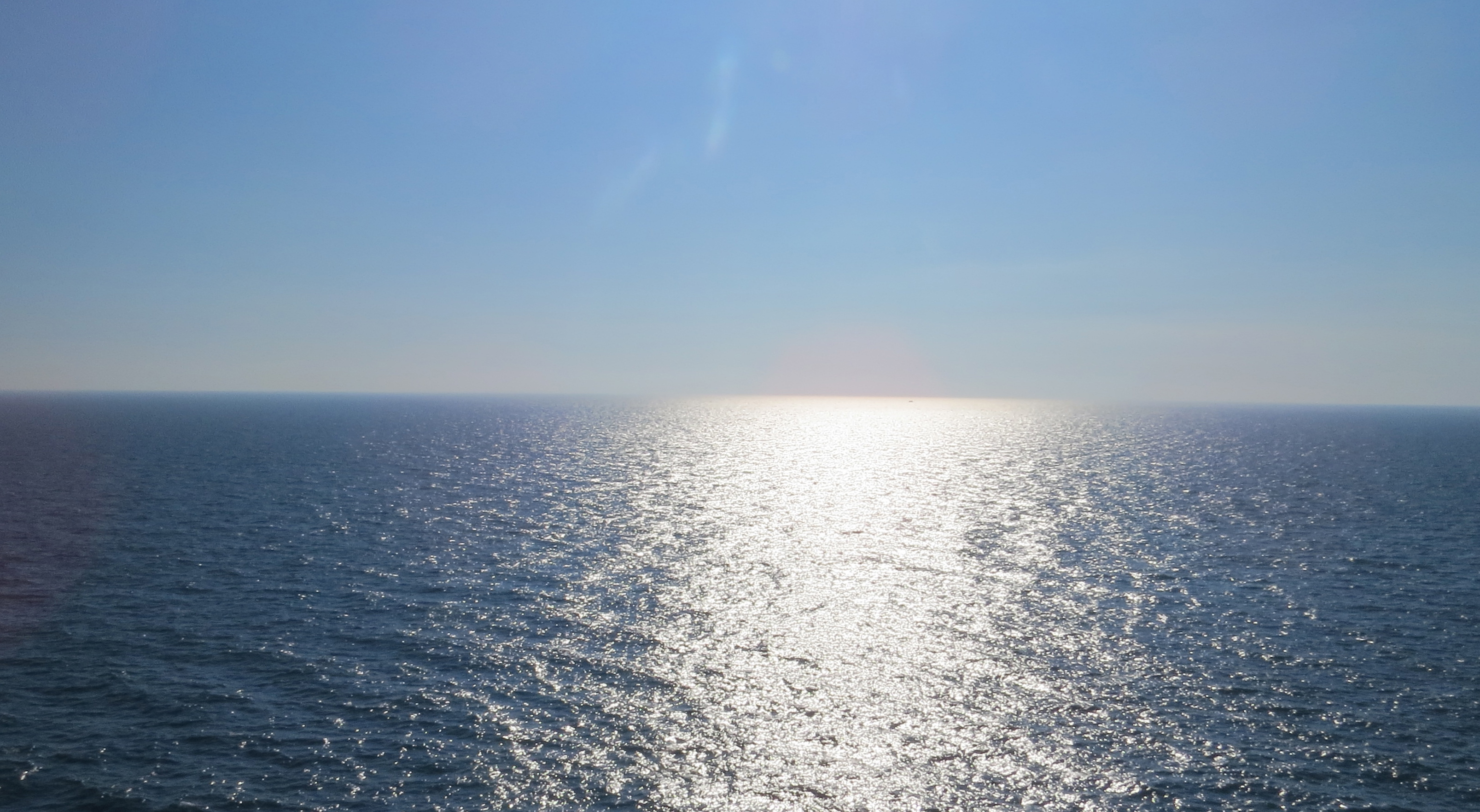 Ons schip lijkt niet zozeer te varen, maar eerder volslagen moeiteloos te glijden over een onmetelijke zilte vlakte. Hier wordt stilte hoorbaar.